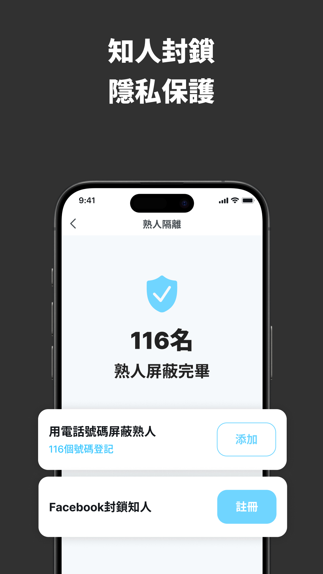 - 通訊錄:為確保使用者資訊不被透露予通訊錄內之聯絡人所使用。