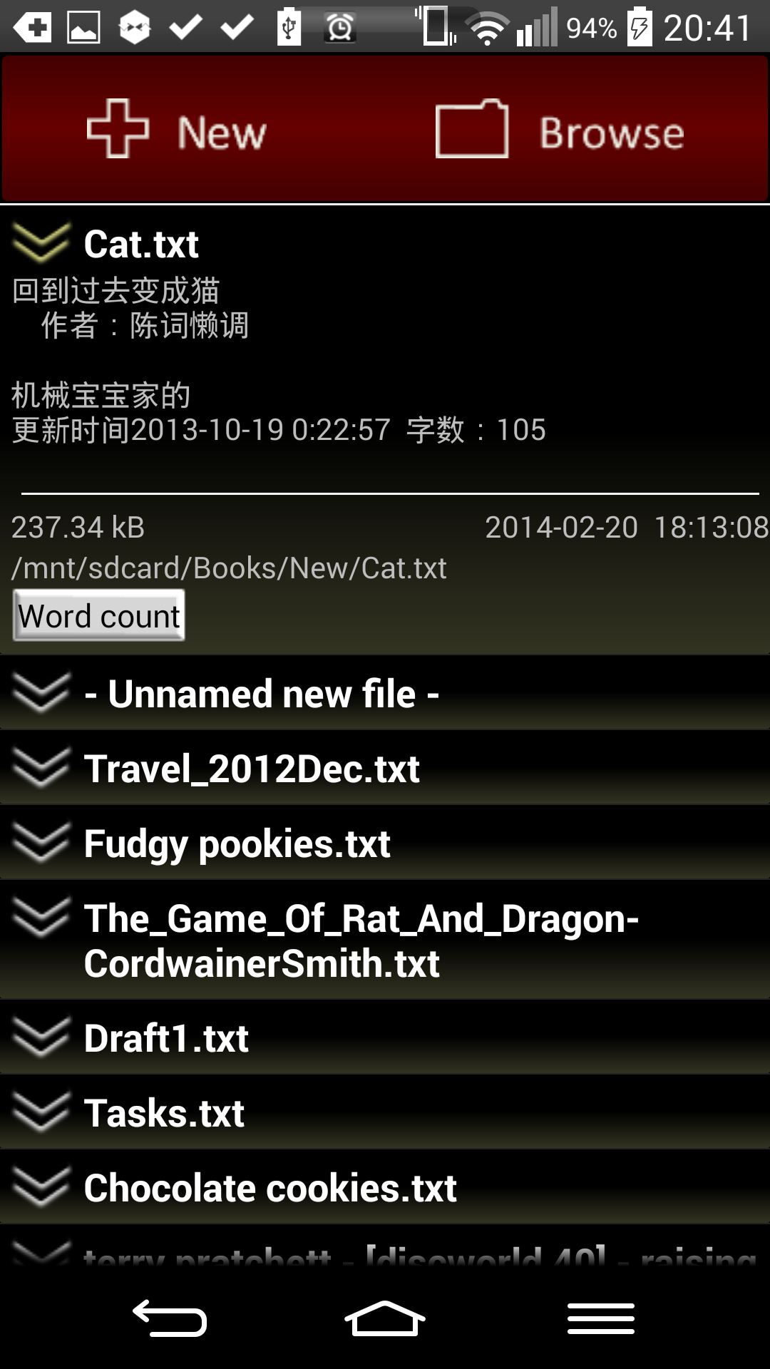 - Word/character/alphabet counts. Expand file details from NTW shelf, then tap "Word Count"