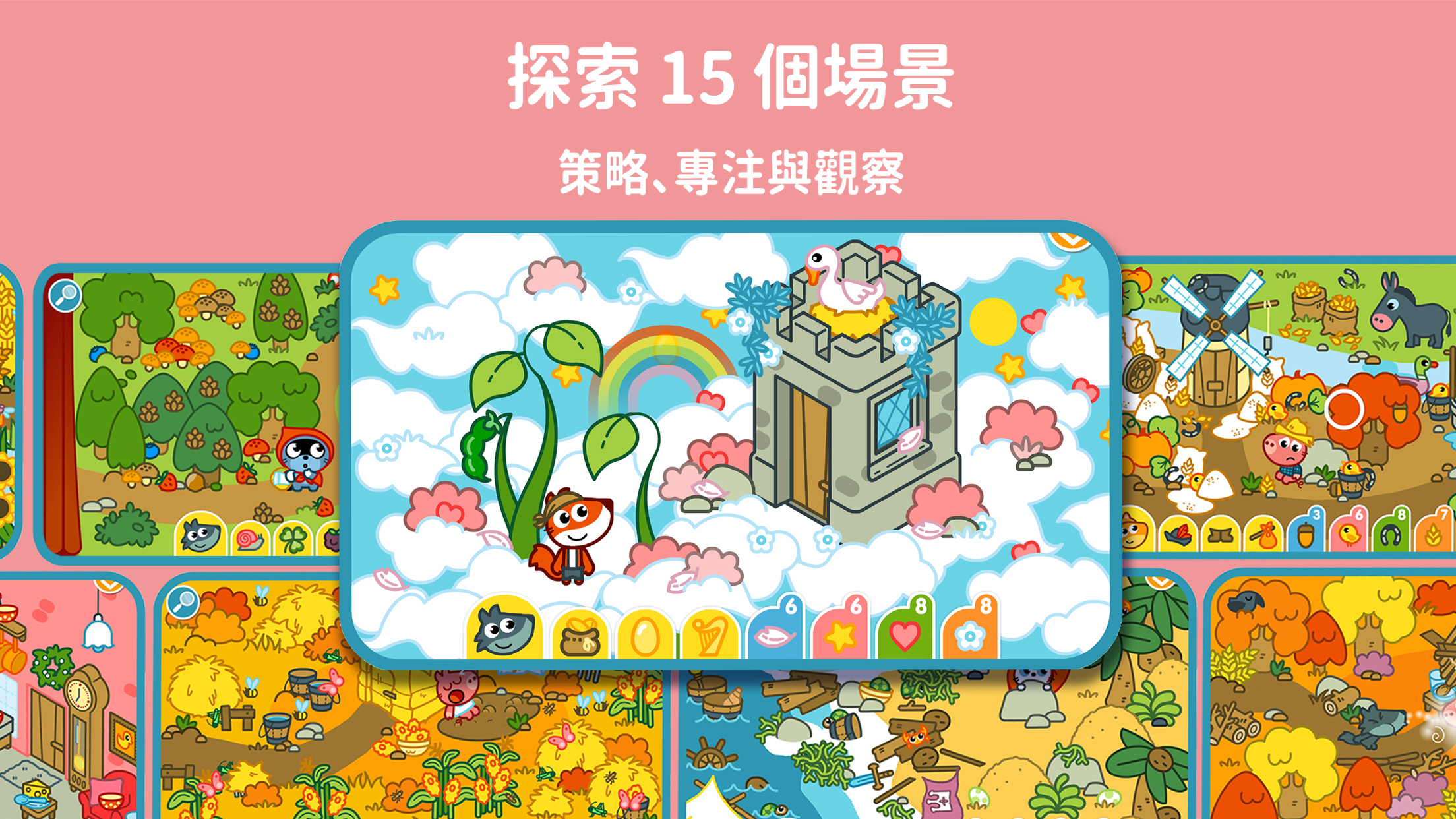 Pango 擁有 20 多款教育類應用程式,全球下載量超過 2,000 萬,深受家庭信賴。Hide and Seek Fairytales 延續這份堅持:清楚、聰明又溫暖的遊戲,自 3 歲起培養觀察力、專注力與邏輯力。