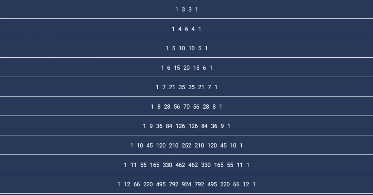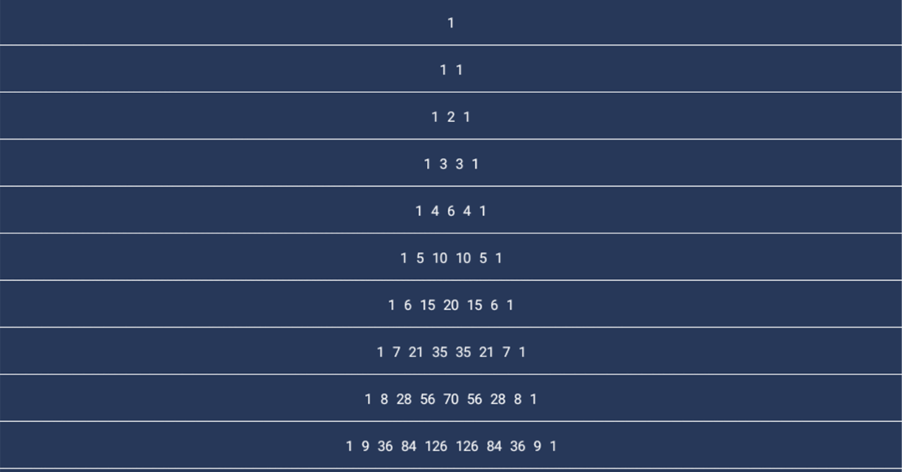 One of the most interesting Number Patterns is Pascal's Triangle. To build the triangle, start with "1" at the top, then continue placing numbers below it in a triangular pattern.