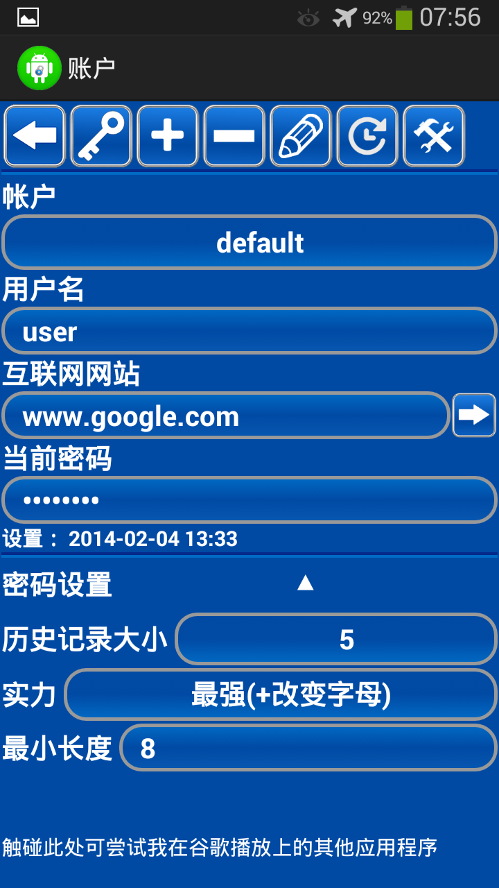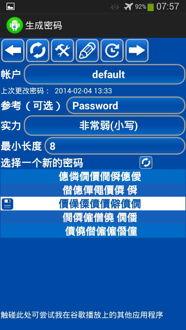 Password Generator Free(包名:com.logan19gp.pswgenfree)開發者是GEORGE,Password Generator Free的最新版本2.45更新時間為2014年03月02日。免费生成密码的分類是工具。您可以查看免费生成密码的開發者下的所有應用並找到免费生成密码在安卓上的6個相似應用。目前這個應用免費。該應用可以從APKFab或Google Play下載到Android 1.5+。APKFab.com的所有APK/XAPK文檔都是原始文檔並且100%安全下載的資源。