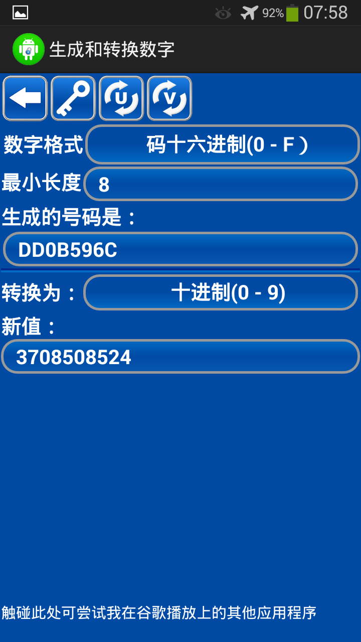 感谢您安装此应用程序。 这个应用程序生成的密码和数字,数字可以转换成其他数字格式。
