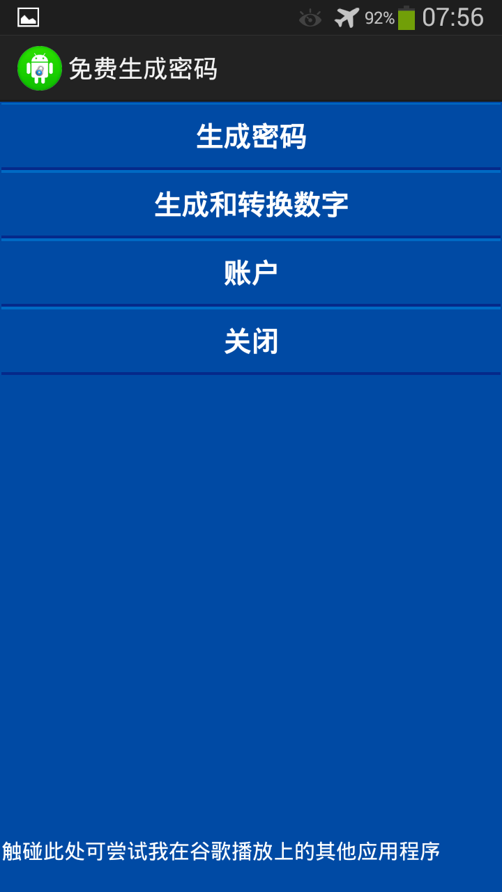可创建帐号并存储密码即可使用,当你需要时或产生比历史旧密码的密码不同。生成密码和数字为您的WiFi和其他帐户很容易与您的手机,并将其存储为每个帐户。你可以从一个字开始的密码,也可以让手机为您生成一个密码。可以定义的位数的密码和数字。这种应用也有一个发生器,用于以不同的格式(二进制,八进制,十进制,十六进制)数,并允许用户转换格式之间的数字。如果您有任何疑问,或者您想要有新的东西添加到这个应用程序,给我发电子邮件