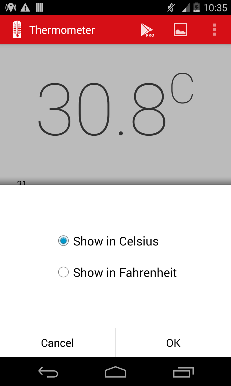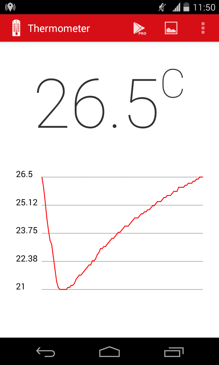 Try ads free version of Phone Temperature - https://play.google.com/store/apps/details?id=com.triladroid.thermometer_pro This app simply measures phone temperature in Celsius or Fahrenheit. Also it is possible to create a screenshot of the current phone temperature. As a creator I use it to measure my phone temperature while running different apps. I just run app (for example some game) and then after some time check phone temperature and make a screenshot. Then I run another app and again after some time I take a screenshot of a phone temperature. It is always interesting for me to compare phone temperature while phone is engaged in different activities. Also, the higher phone temperature, the faster phone will loose its battery charge. So it is useful to check phone temperature once in a while to ensure that there are no unwanted processes running in the background. Please, don't downvote this Phone Temperature app if you have any errors or if it does not work as you expect. Just write to [email protected] instead and I'll try to help you with all your questions!