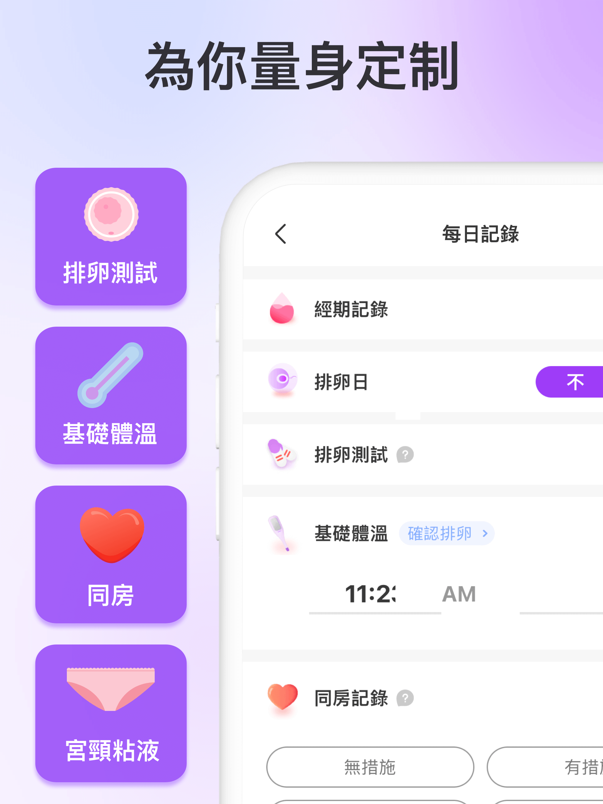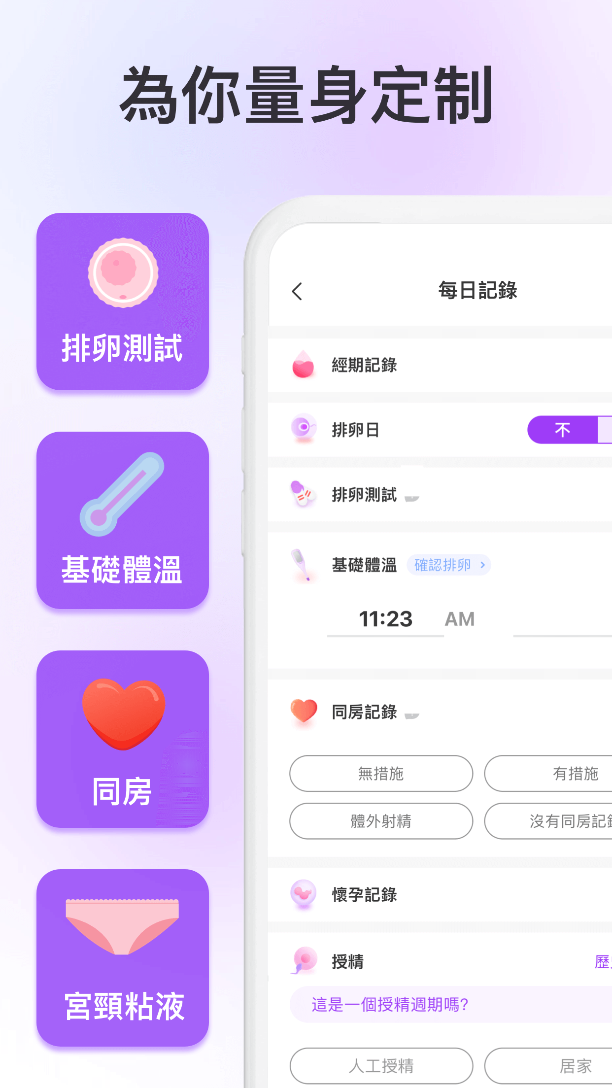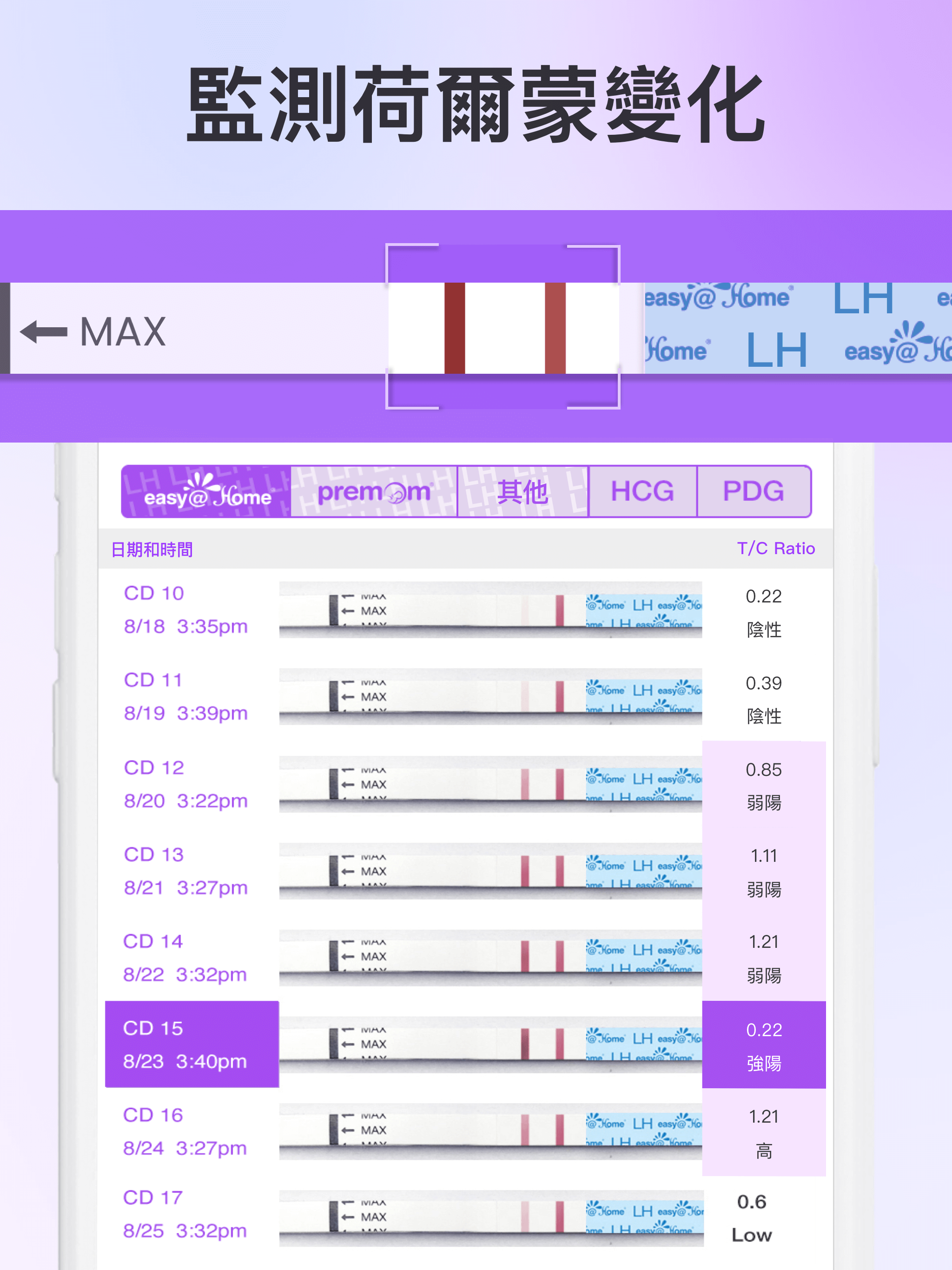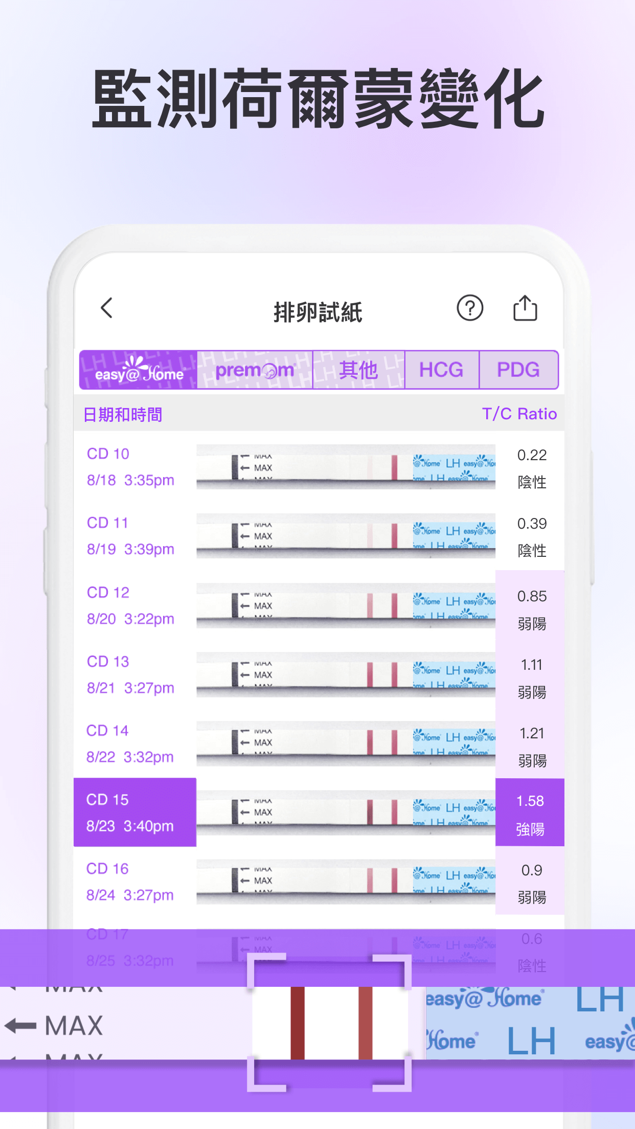 計算排卵&追蹤生育能力功能排卵&早孕測試讀值器和基礎體溫智能曲線+用手機掃描排卵試紙,即時預測你的易孕期。
