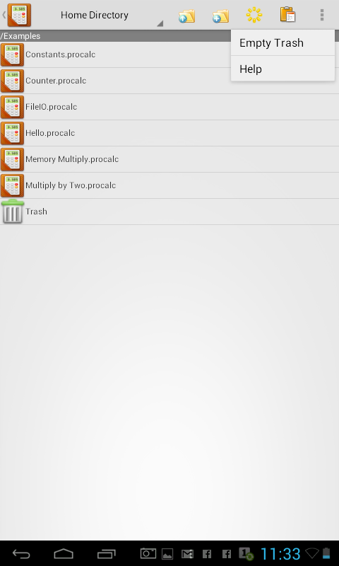 2.0 - ProCalc now comes with a built in Spreadsheet which can be accessed by the menu key. Spreadsheet can be manipulated by BASIC programs running in the calculator. ProCalc is now DonationWare - there are no adverts or restrictions on the application.