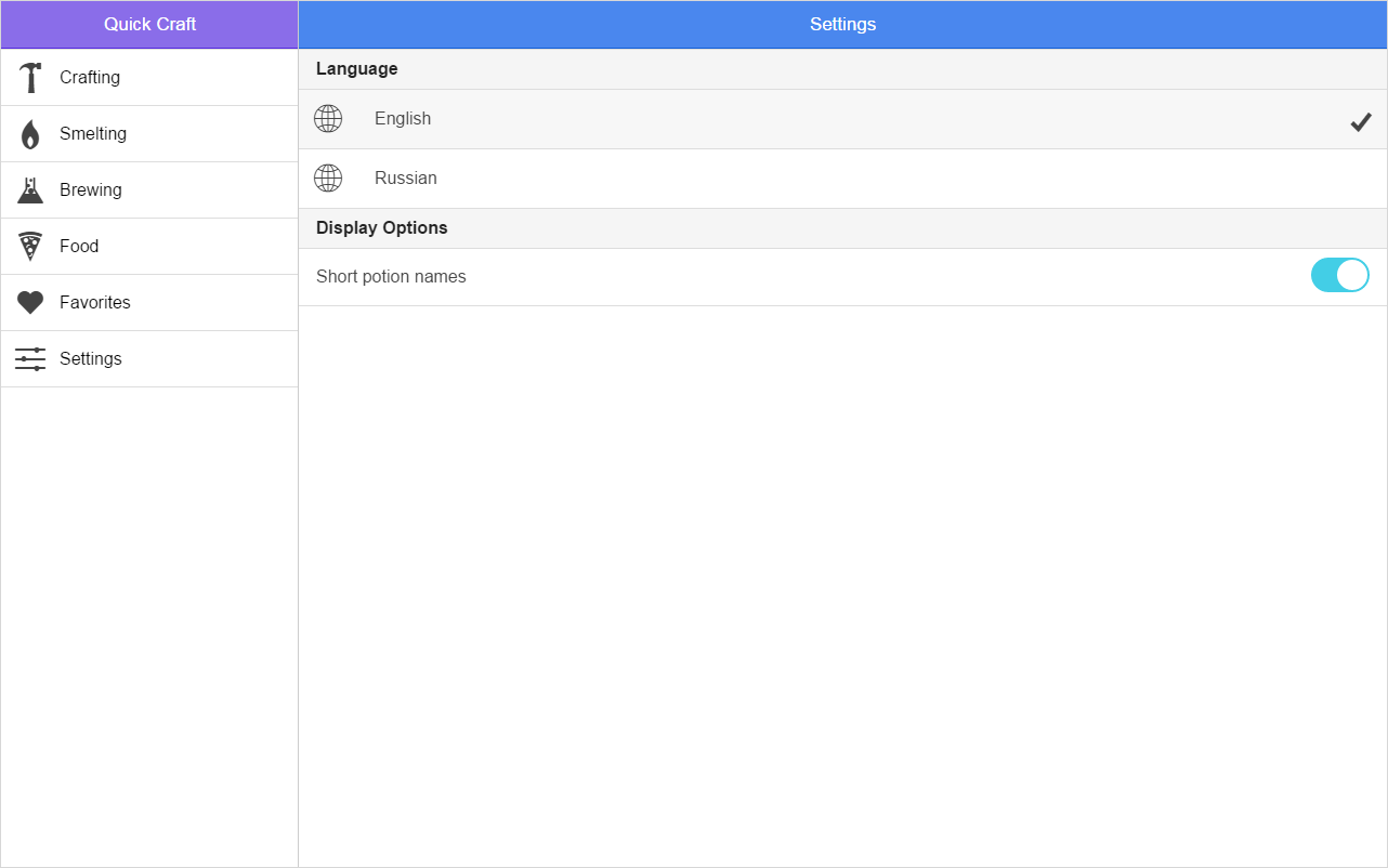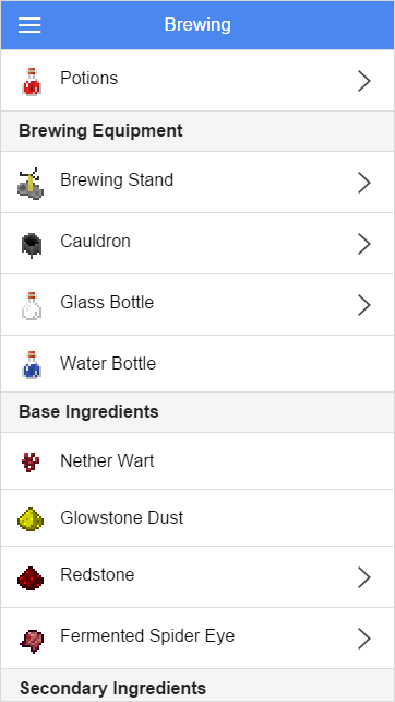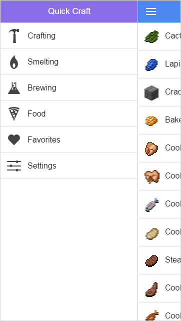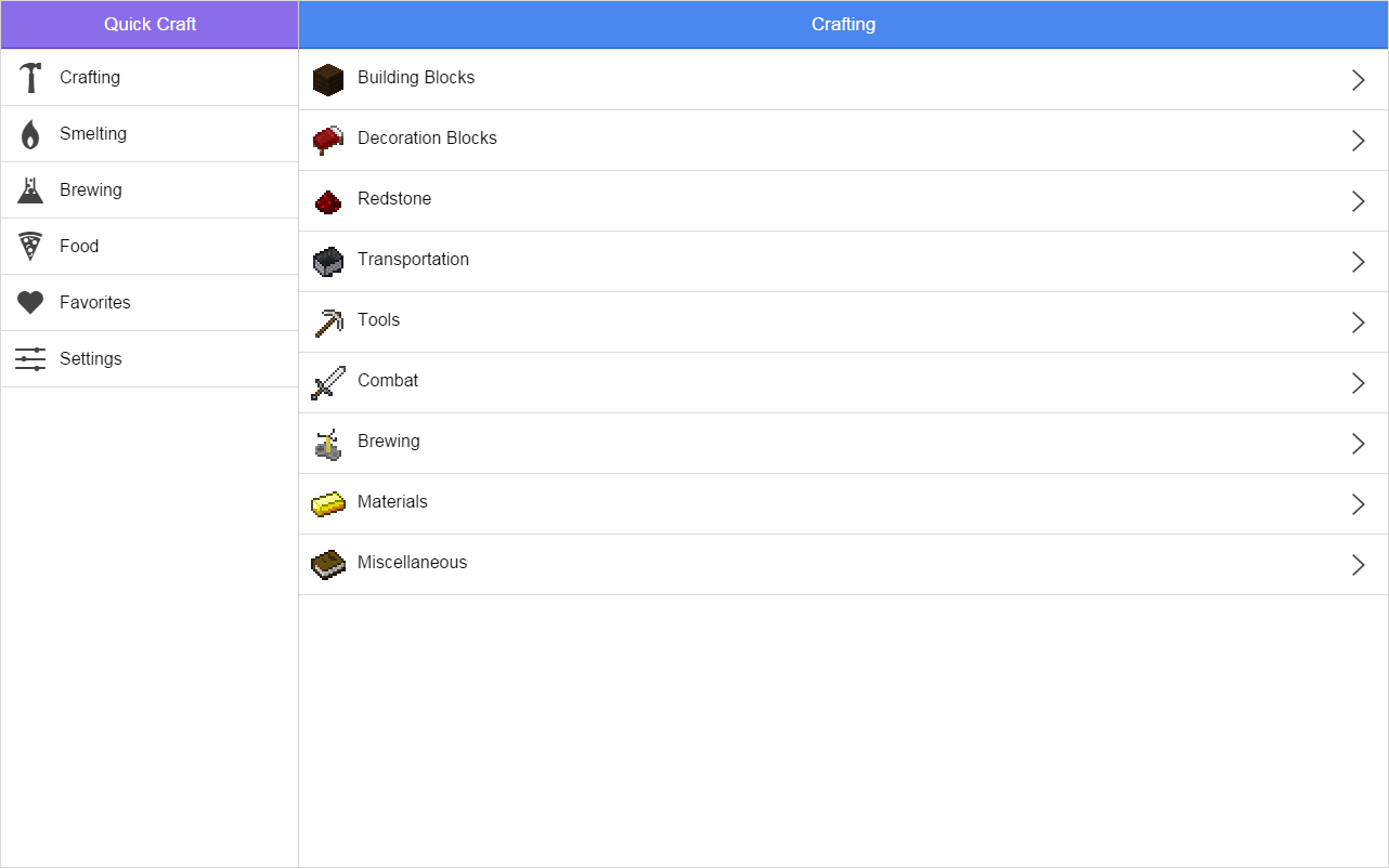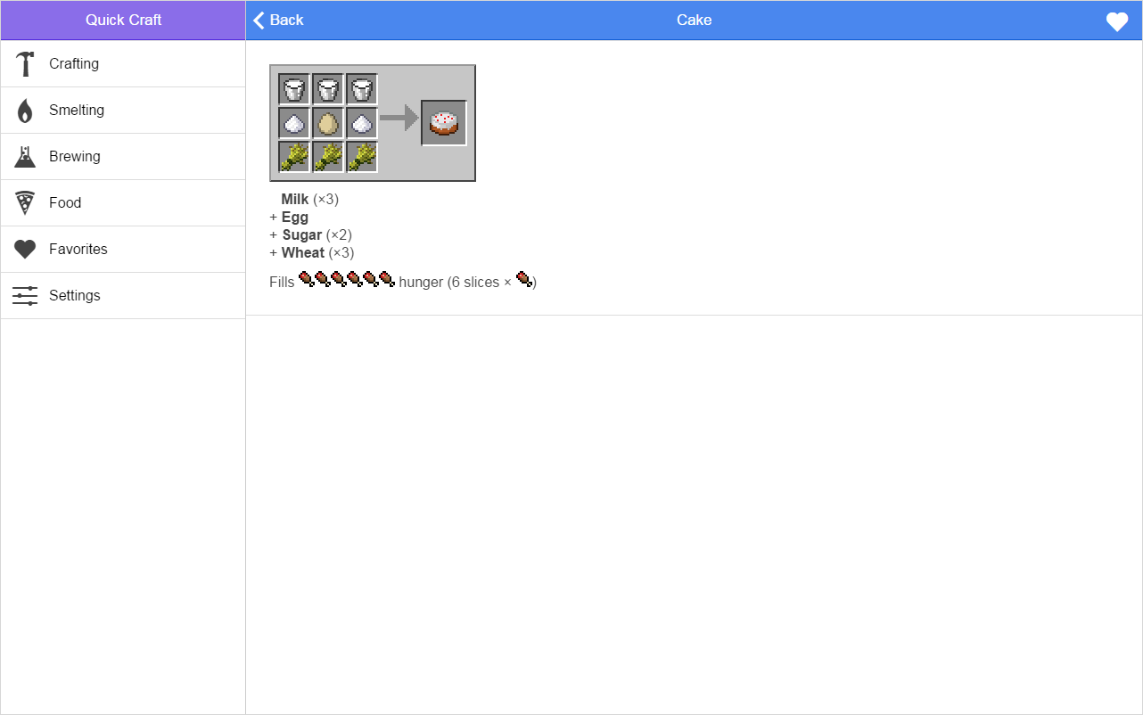 - Unofficial Crafting Guide for Minecraft - Crafting, Brewing and Smelting recipes - Bookmarking for your Favorite recipes - Basic information on Food and Potion effects