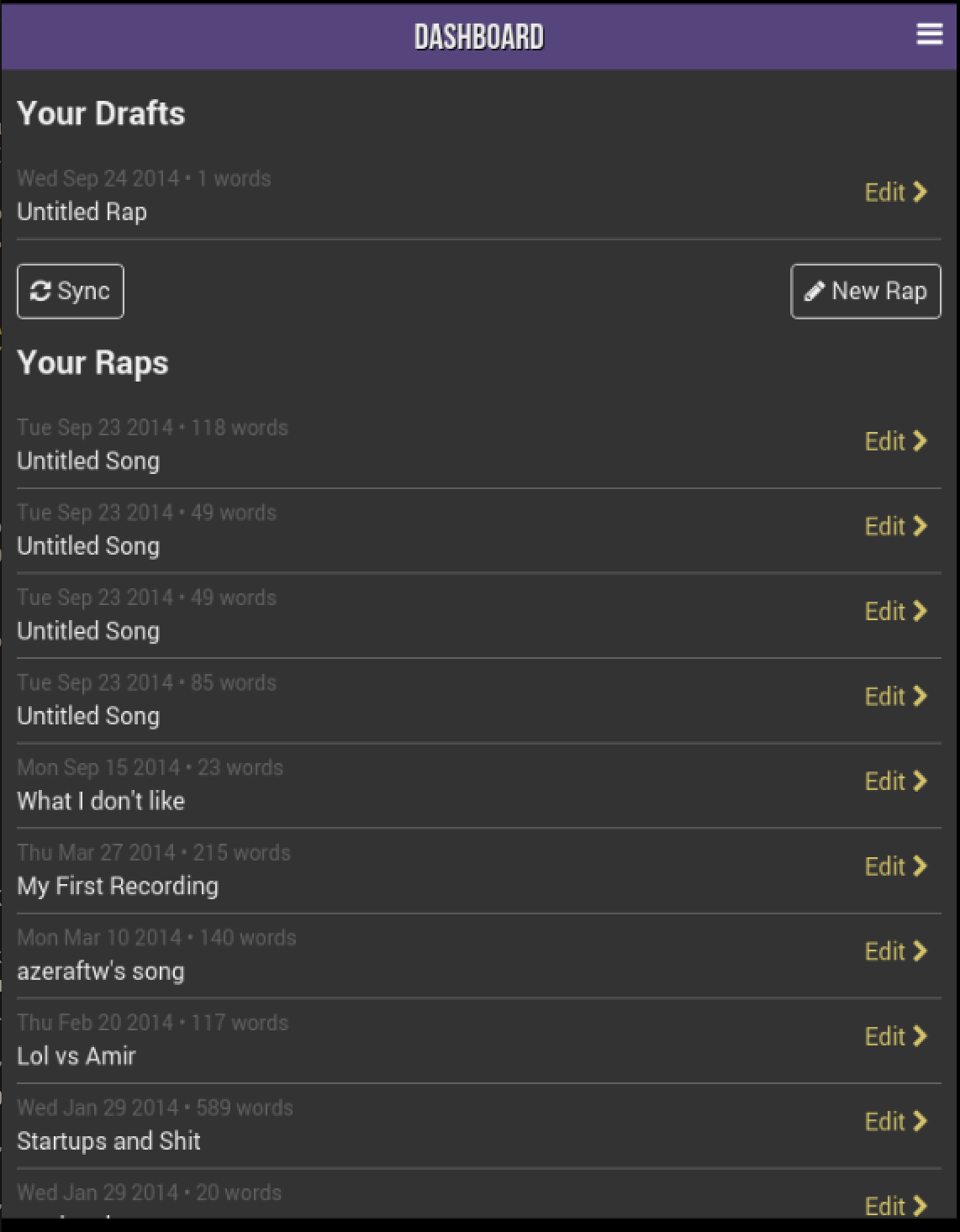 - Read and write lyrics even when offline - You can send all the raps you write on your phone on to your RapPad account - Participate in discussions on the forums