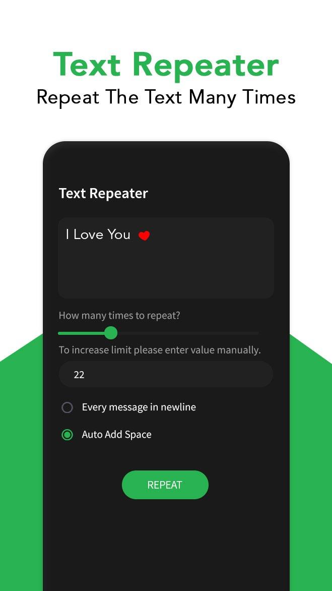 ● Text Repeater: You can even repeat a randomly generated cool text in it. Text repeater also supports emojis for repeating. You repeat message with index number.