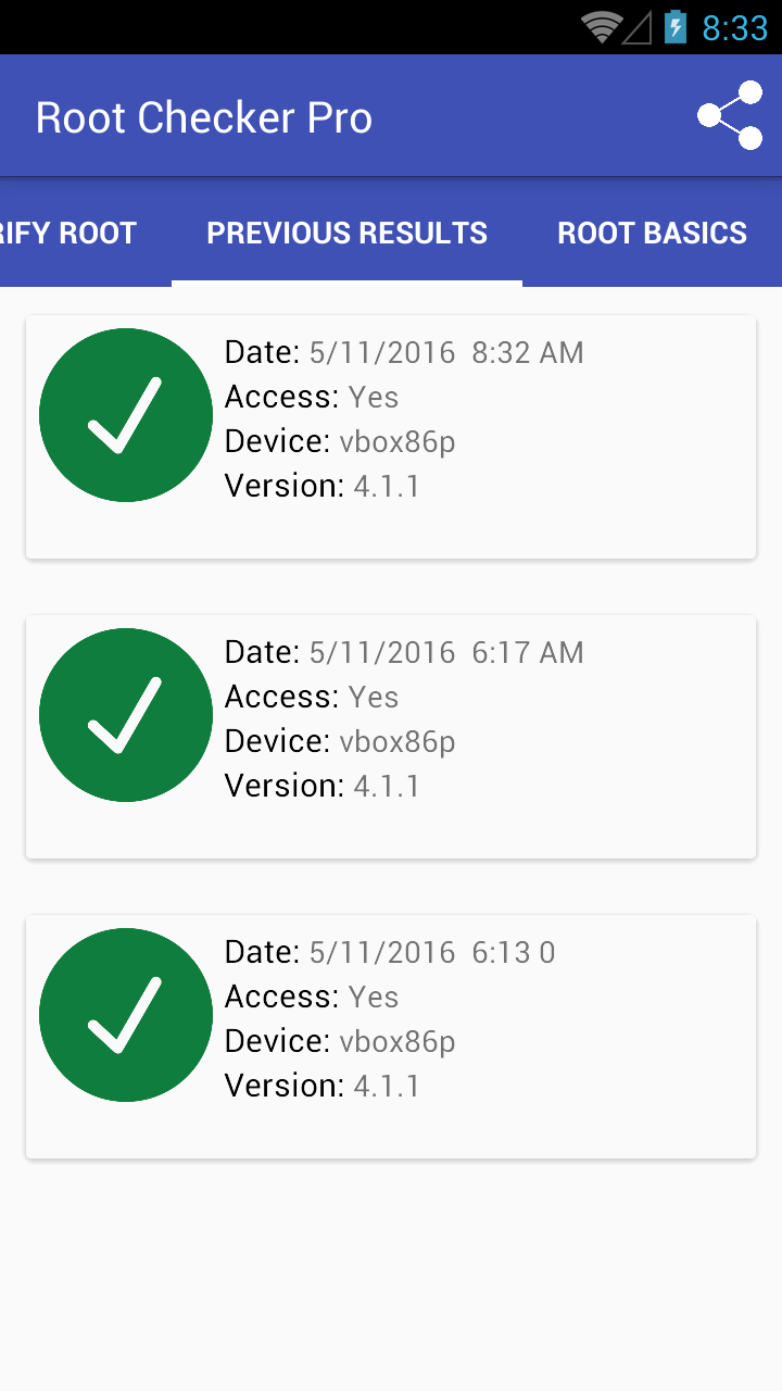 Simple and easy to use app > One click root verification > View all previous results Basics of root explained in the app. We have tested this app on many devices. If you find a bug in this app you can report to us. Successfully tested on Android Marshmallow. We appreciate your support!