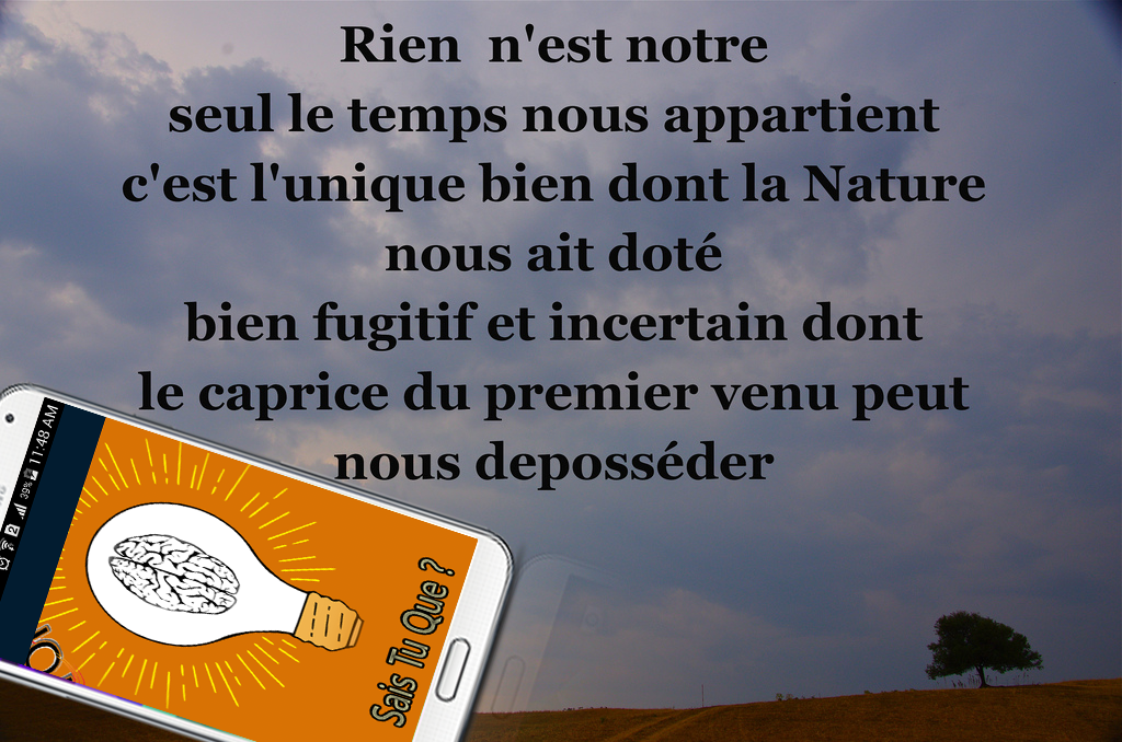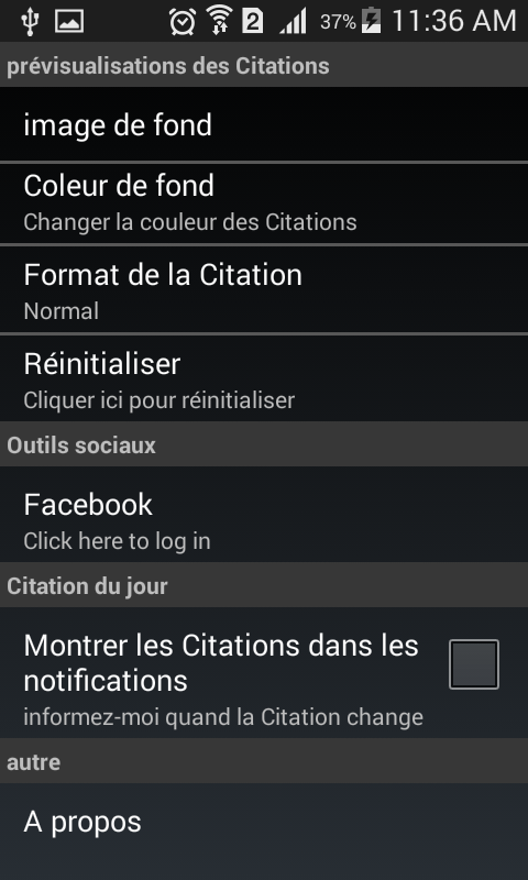 Vous avez certainement vu circulez dans les réseaux sociaux plusieurs images à but instructif, vous permettant de découvrir et de nourrir vos connaissances. Ce sont les fameuses images ‘’ Citations SaisTu Que’’ " Le saviez-vous? ". On vous a tout rassemblé dans une application simple et légère. Avec notre application, c’est l’occasion ou jamais d’augmenter considérablement vos savoirs et de changer votre vision sur beaucoup de cotés. Elle dispose d’une interface graphique assez évoluée, vous pouvez enregistrer vos citations préférées ou les garder sur nos serveurs en les ajoutant simplement à vos favoris. D’amples autres options sont à découvrir Installer la dès maintenant et faites la partager. ★★★★★ Des histoires intéressantes, friandises à volonté, des faits et des anecdotes sur la science, la technologie, la nature, le sport et tout ce qui se trouve sous le soleil et autour de l'univers! Un répertoire de faits bizarres rire, choquants, drôles, et parfois vulgaires pour vous tenir informés et vous divertir. blog citation du jour les plus belles citations bonheur amitié amour et proverbe anniversaire philosophique de la vie mariage vous pouvez : *Partager les Citations sur Facebook et tout les applications *Chercher la Citation à partir du mot que tu veux utiliser , *Changer la couleur des Citation *Choisir la taille des Citations *Choisir les Citations préférées et les placer dans "Favoris" pour creer ta liste des Citations *des Citations nouveaux chaque mois , merci d avoir installer cette app