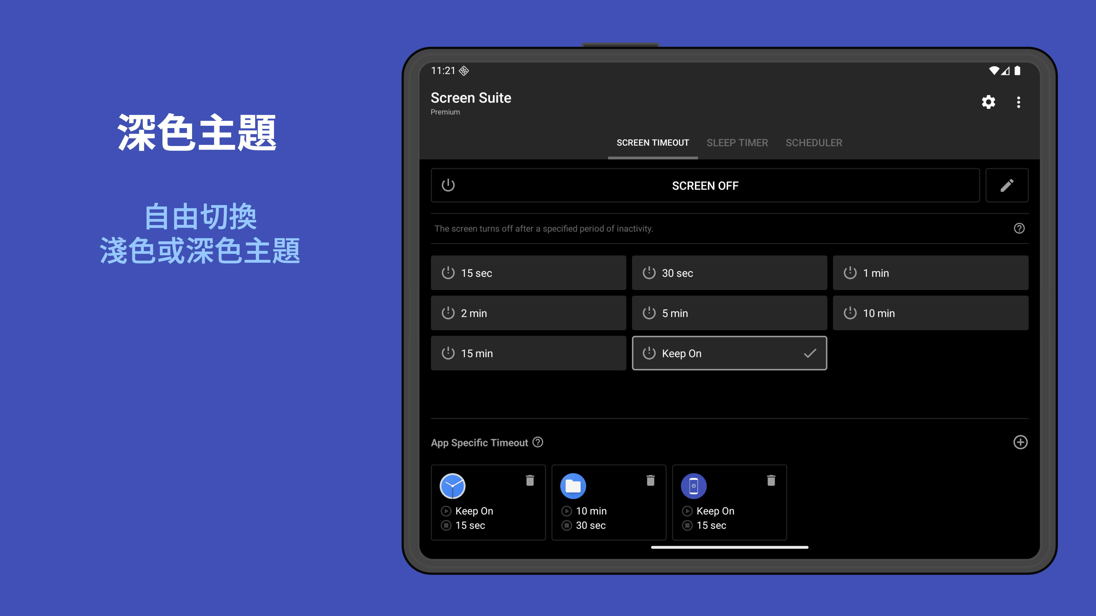 Screen Off Timeout(包名:com.cozyme.app.screenoff)開發者是Cozyme,Screen Off Timeout的最新版本2.8.1更新時間為2026年03月11日。Screen Suite -ScreenOffTimeout的分類是工具。您可以查看Screen Suite -ScreenOffTimeout的開發者下的所有應用並找到Screen Suite -ScreenOffTimeout在安卓上的200個相似應用。目前這個應用免費。該應用可以從APKFab或Google Play下載到Android 10.0+。APKFab.com的所有APK/XAPK文檔都是原始文檔並且100%安全下載的資源。