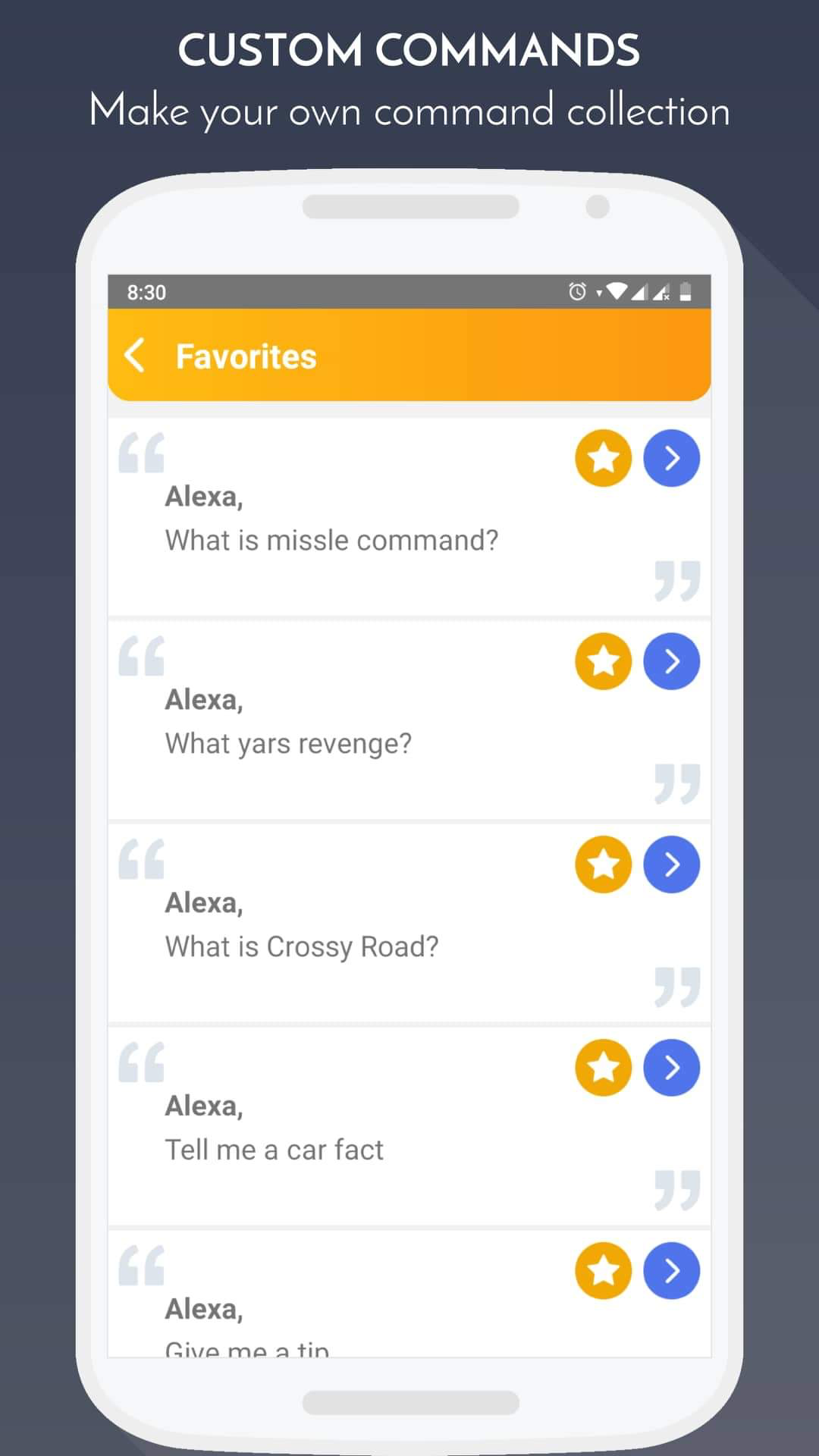 Help for Alexa app echo dot is indispensable innovation for your devices. Experience our new Help for Alexa app echo dot with over 1000 commands acquired for fun adventures! Help for Alexa app echo dot allows users to freely create their own sayings for Amazon Alexa device, then share and have fun with friends! Invite family and friends to join Help for Alexa app echo dot to have amusing experience by guessing how Alexa responds to your questions! With Help for Alexa app echo dot, funny sentences or hilarious questions are also available for Amazon echo, Amazon dot or Amazon Alexa! Help for Alexa app echo dot also allows users to interact directly with Alexa device without saying anything! Available for Amazon Echo, Dot, Show and all Alexa devices! Have so much fun and amazing experience with Setup for Alexa app echo dot! * NOTE: This app is NOT sponsored, authorised or affiliated with Amazon*