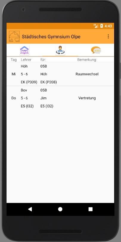 Zeigt deine persönlichen Vertretungsstunden, die News der Homepage und wichtige Informationen zu deiner Klasse an. Du erfährst mit einem Klick, ob und bei wem du Vertretung hast und erhälst im Falle von einer Vertretungsstunde auf Wunsch eine Benachrichtigung auf deinem Smartphone. So bist du immer top informiert! Als Lehrer kannst du zusätzlich einzelne Klassen anschreiben, ohne das die Schüler im Vergleich zu anderen Messengern deine Nummer sehen.