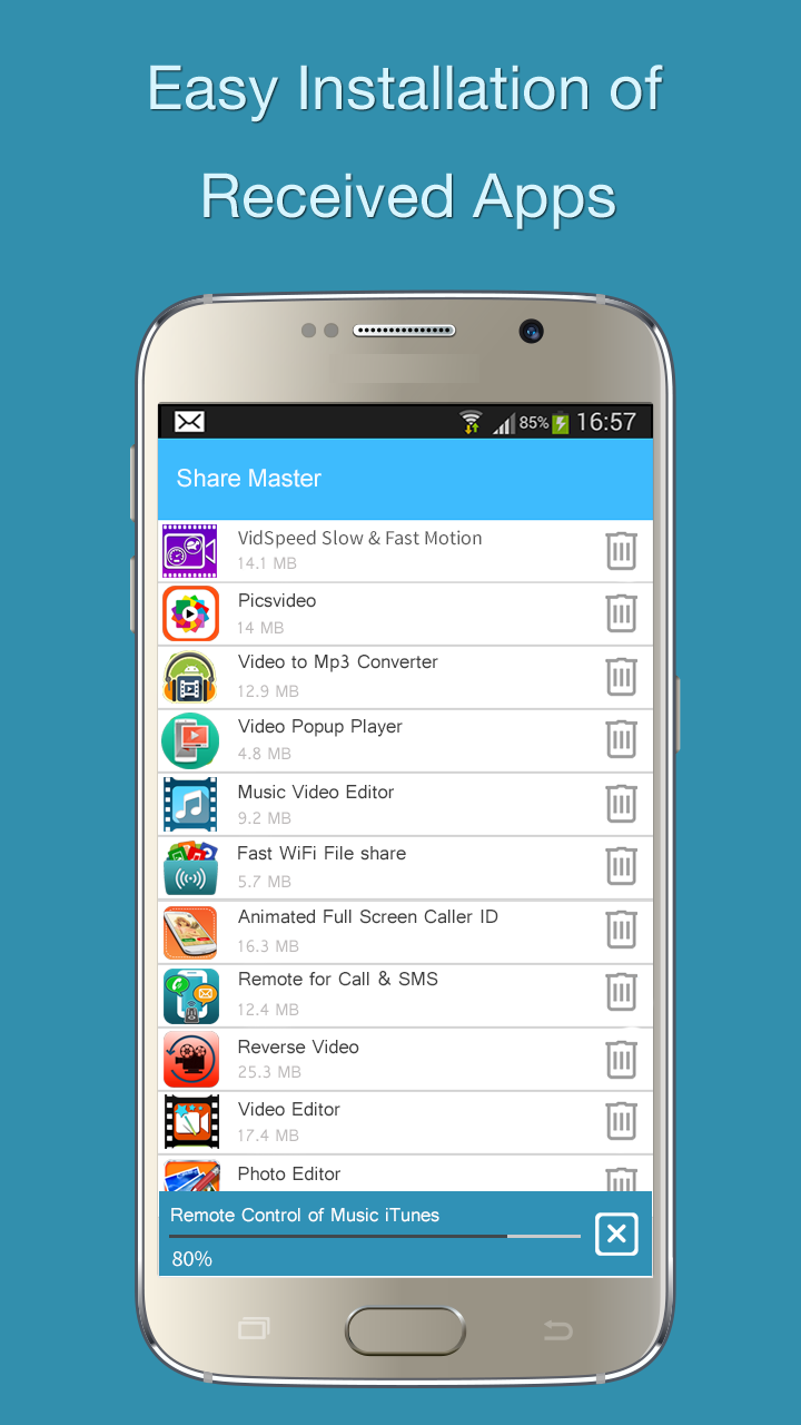 + Received Android Apps are kept in a Received folder for later use. You can easily install apps later. You can also delete apks once you have installed the app.
