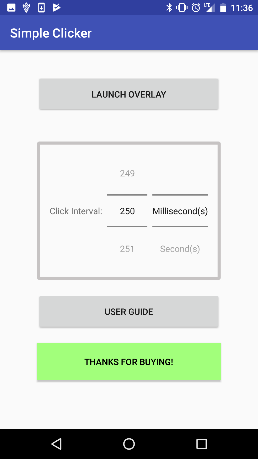 Simple Clicker will reliably click any location you target on your screen at whatever interval you choose. Simple Clicker does NOT require root and works on full-screen apps! If you've ever needed to keep a game active, tap the same button over and over, or tap anywhere as fast as possible... we've got you covered. Our team at SimpleHat vows to keep all our features free. We always offer the ability to opt out of ads for a modest price and make our ads as unobtrusive as possible for everyone else.