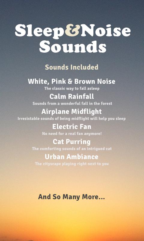 - White Noise - The most famous sound for sleeping peacefully in high quality is here! Always makes for a good nights rest.