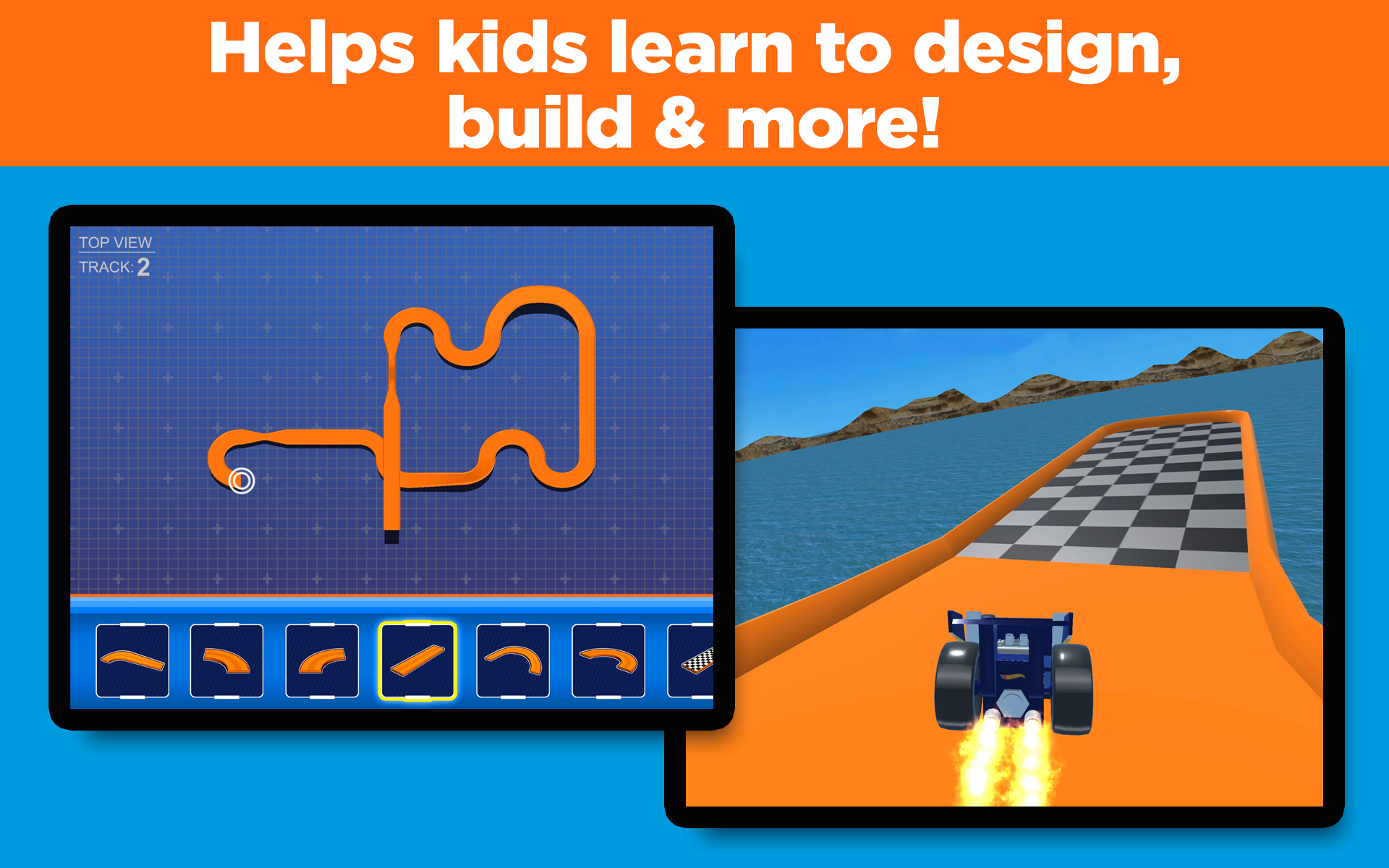 Learning curriculum is woven throughout the app and naturally levels up as kids learn. With all of Hot Wheels® City to explore, 2 Supercharger challenges, Creation Stations and a Track Builder, your preschooler will gain the tools they need for kindergarten readiness, while having fun along the way!