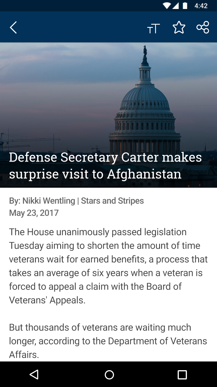 • Full Stars and Stripes news coverage with unique, independent reporting from Stars and Stripes journalists located around the world and embedded with our troops.