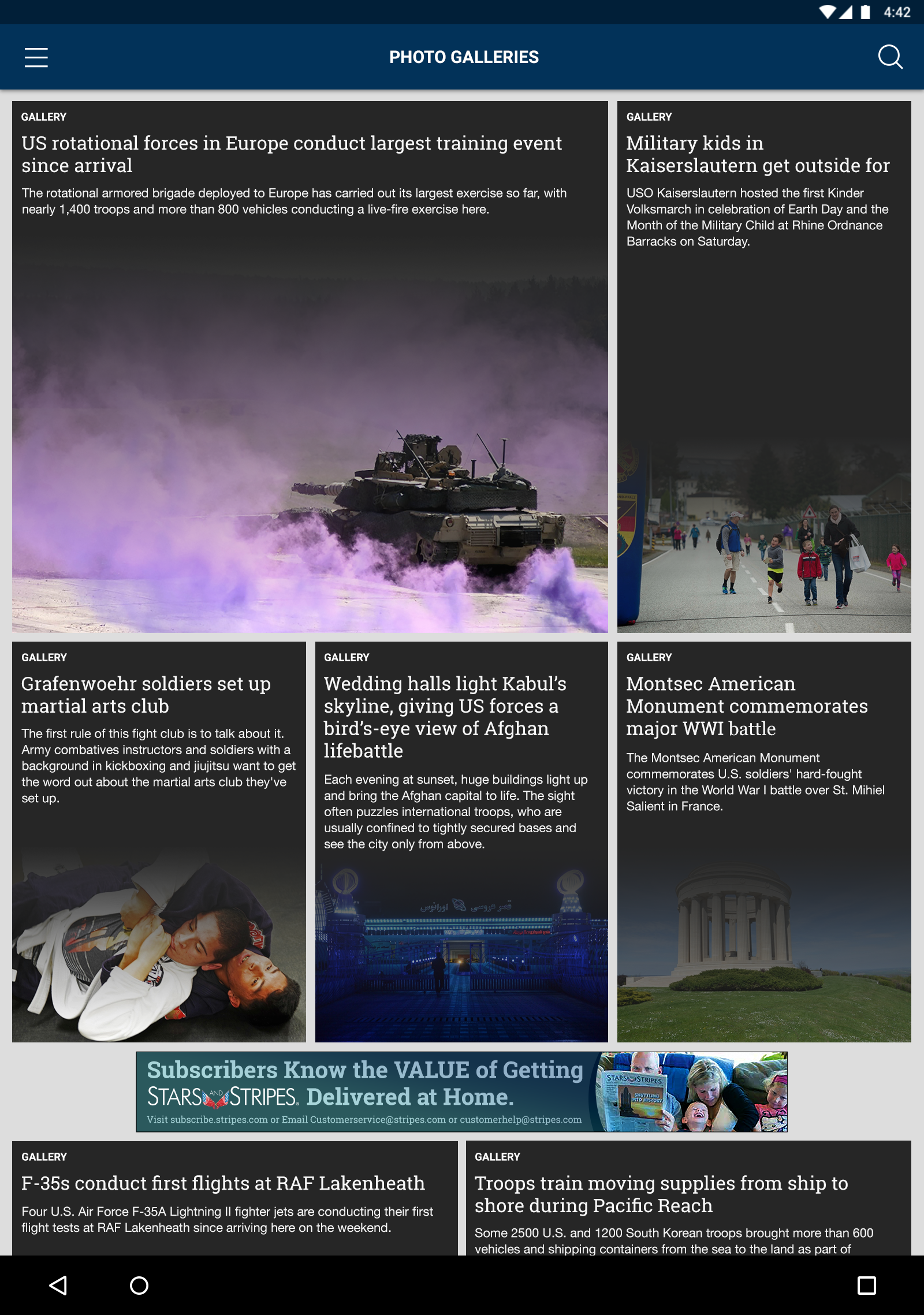 Receive U.S. military news you can rely on with the Stars and Stripes app. Download the app for free and enjoy a free preview of the Front Page top stories. When you subscribe to Stars and Stripes Digital Access at [ https://www.stripes.com/subscribe ], you will get unlimited access to all of Stars and Stripes digital content and products, which includes app content, website content, daily Digital Edition downloads, and more. Get the independent perspective and reporting of Stars and Stripes by subscribing today.