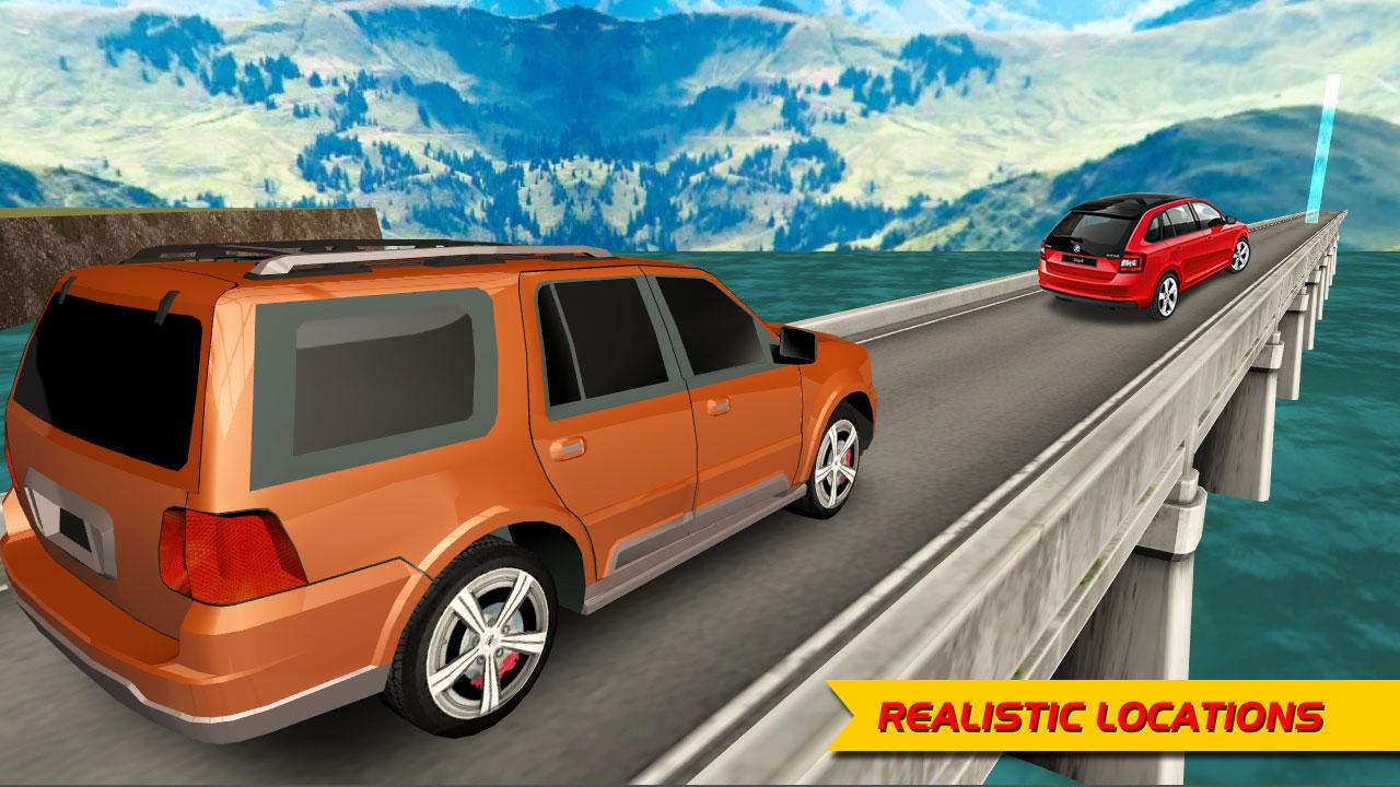 SUV Car Driving: Try to be the one of the fastest SUV Cars drivers. Be the first to enjoy the real cars drives in off road environment. This game offers you the unique experience that you can choose your own style. This game will take you for the city road tracks with your expert and accuracy driving such as champion driver. Now you have everything you just need to overcome any obstacles. Experience all the pleasures of drive off-road climb on a mountain, drives along the narrow shaky bridge, and turning streets. Fasten your speed and wear seat belt. Drove quickly without hitting other cars. There are many exciting and thrilling levels to challenge your skills. While playing these levels you can practice your real city skills. So hurry up let’s start your drive and ride with high accelerate to show a real driver. Drive safe and have fun !!! Game Features: 1.Easy controller. 2.Realistic physics and driver experience. 3.Pleasing graphics and smooth car handling.