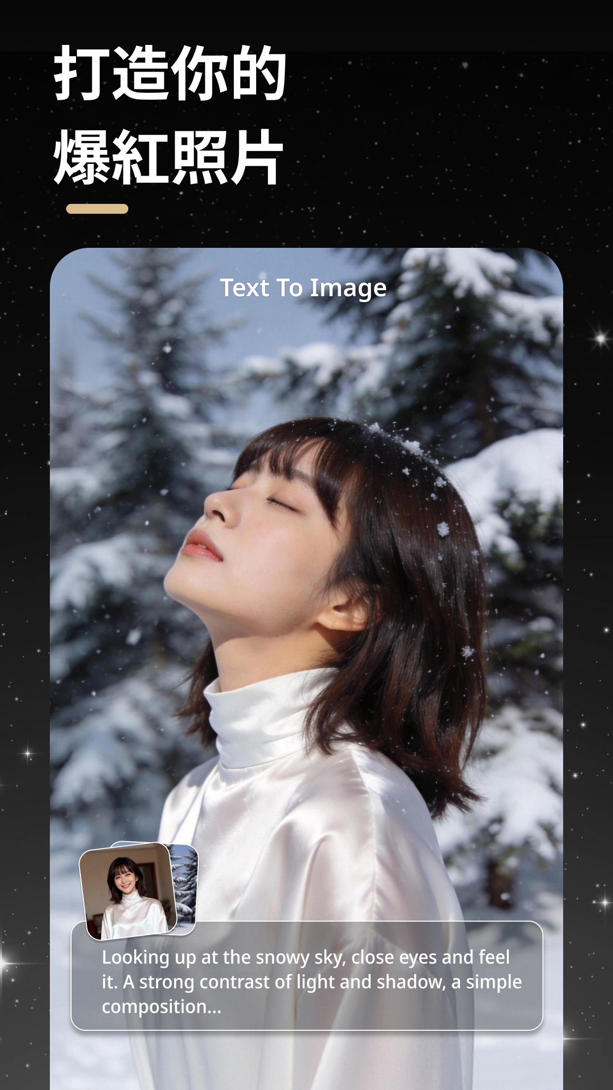 透過 SelfyX 解鎖照片創意的未來!我們結合多種尖端 AI 影像生成模型與專業編輯工具,讓您將想法轉化為視覺內容,將普通照片變為非凡傑作。從令人驚豔的人像照到魔法般的編輯效果——全都在一個功能強大的應用程式中。