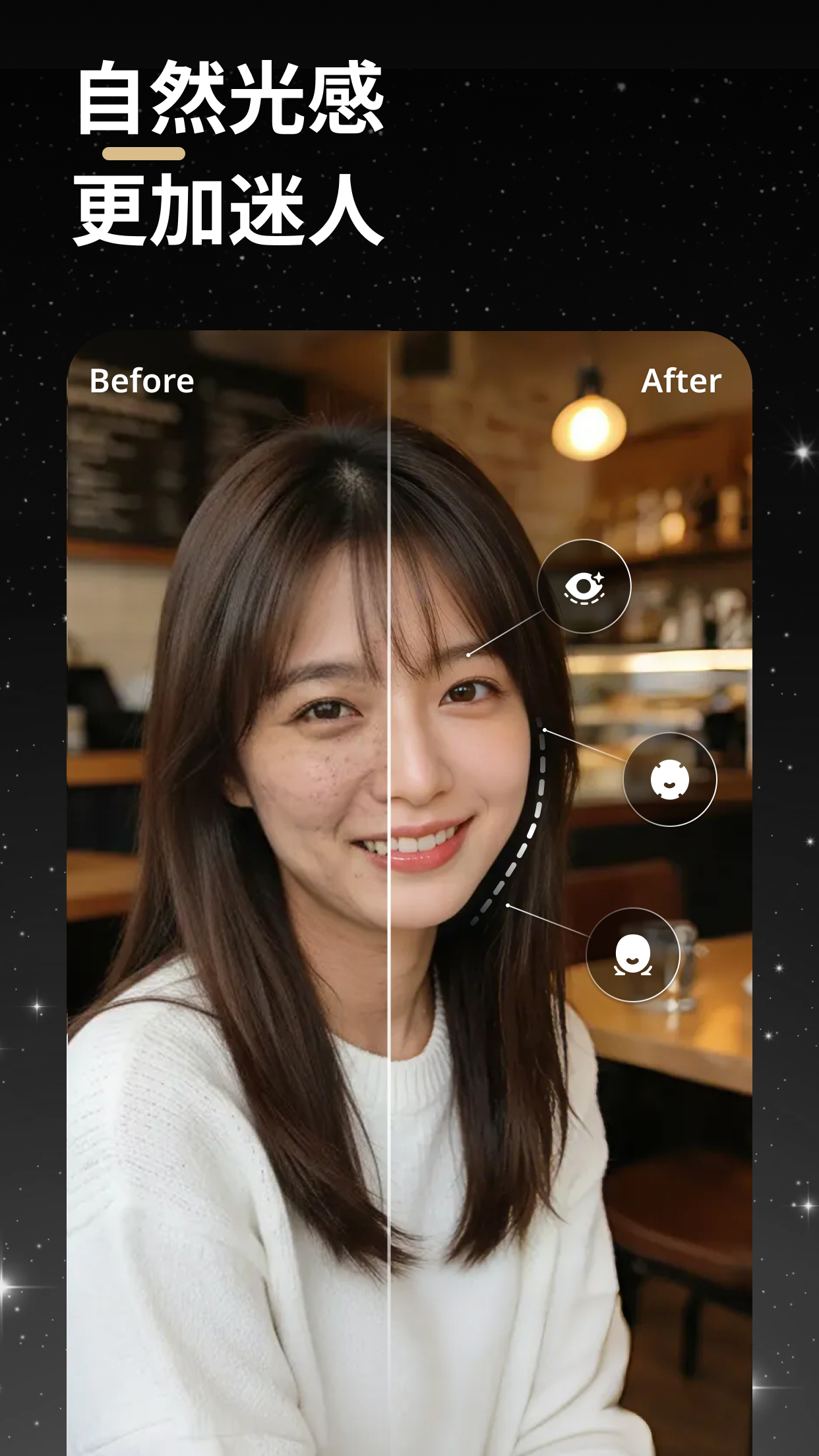 • 智慧修復:專業級皮膚潤飾、牙齒美白、黑眼圈消除、無縫塑形