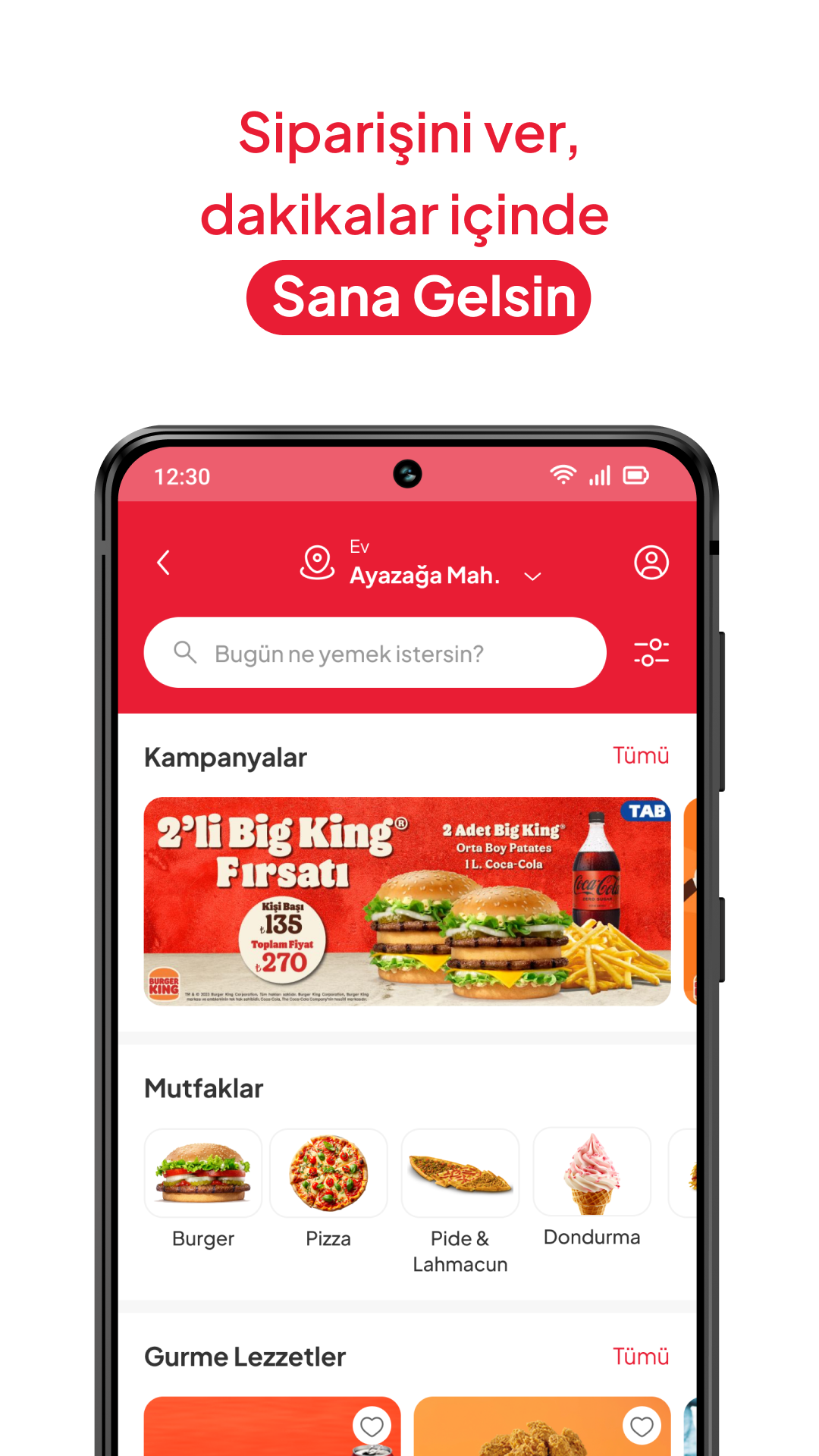 使用 Sana Gelsin,選擇您喜愛的餐廳,將心儀的菜餚加入購物車,即可在線上支付或到店付款。您的訂單將快速送達!