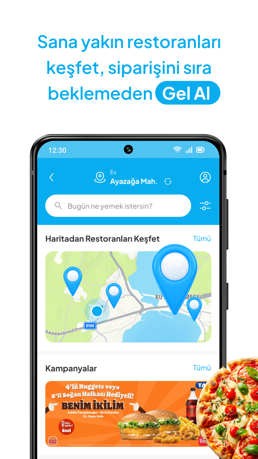 Tıkla Gelsin® 美食網站和訂餐應用程式為使用者提供專屬優惠和折扣。從 Burger King®、Popeyes®、Arby's®、Subway®、Sbarro®、Usta Dönerci®、Usta Pideci®、Amasya Meat Products®、Milgo® 等眾多知名品牌訂購美食。 Tıkla Gelsin®,一站式服務,盡在掌握!只需將美味佳餚加入購物車,即可享有折扣優惠!