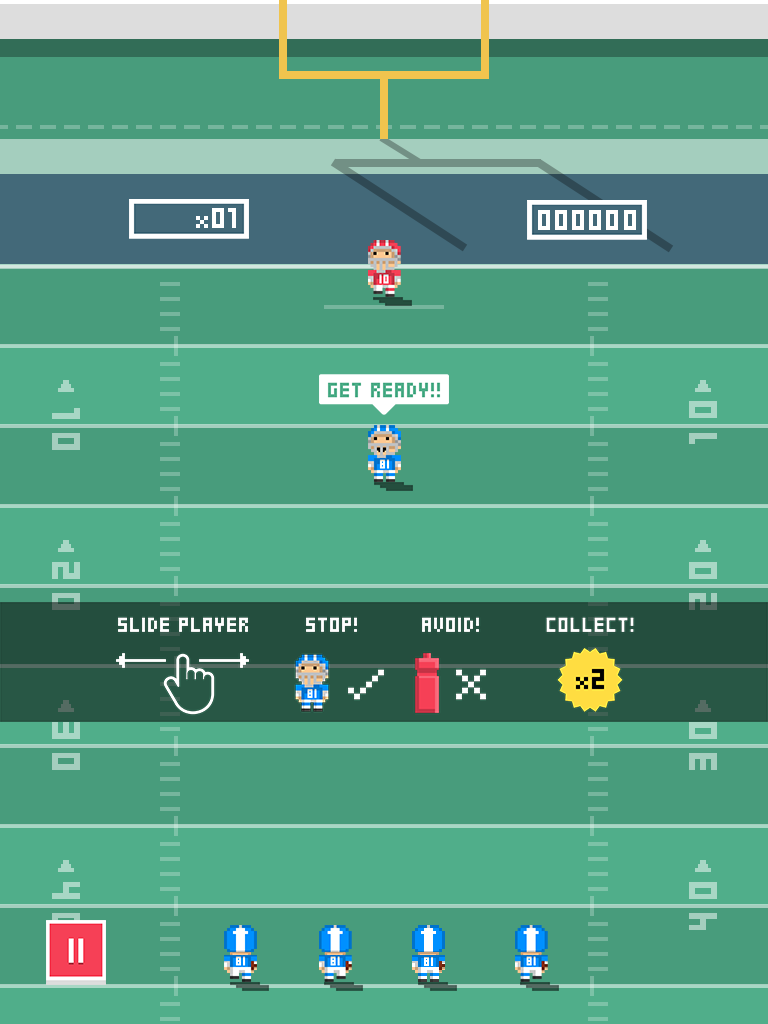 Tiny Touchdown is fast, fun and not for the faint-hearted. This action-packed sports game may be simple to play but it’s a challenge to get high scores. Like the real football game, stopping the players from reaching the touchline requires speed and precision - make one mistake and you’re out! The higher your score, the faster the runners will come at you and it is your job to tackle them while avoiding flying red water bottles.
