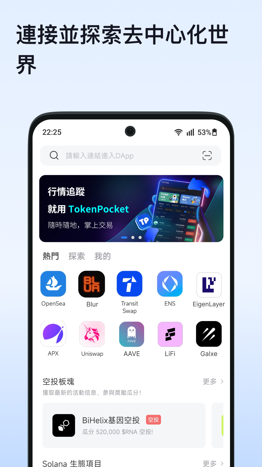 TokenPocket是全球領先的多鏈去中心化錢包,也是連結Web3世界的門戶。自2018年上線以來,已為全球超過2500萬用戶提供可信賴的數位資產管理服務,是BTC、ETH、BNBCHAIN、Polygon、Solana、TRON、Dogecoin及Arbitrum、Optimism、Base等Layer 2公鏈上最具競爭力的錢包。使用TokenPocket,您可以輕鬆連接1000多個網絡、數千個DApp應用及整個Web3生態項目,用戶可以在錢包內實現存儲,閃兌,轉賬,接收和交易加密貨幣,享受一站式去中心化交易和市場服務,十分便利和安全。