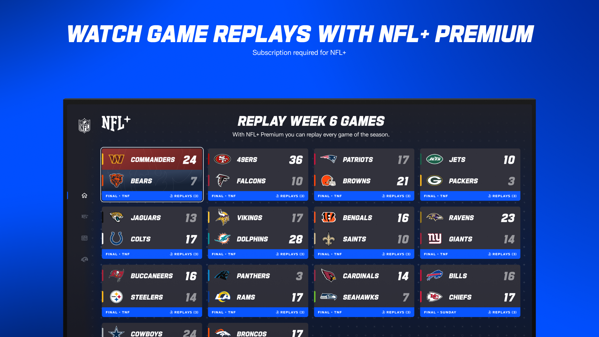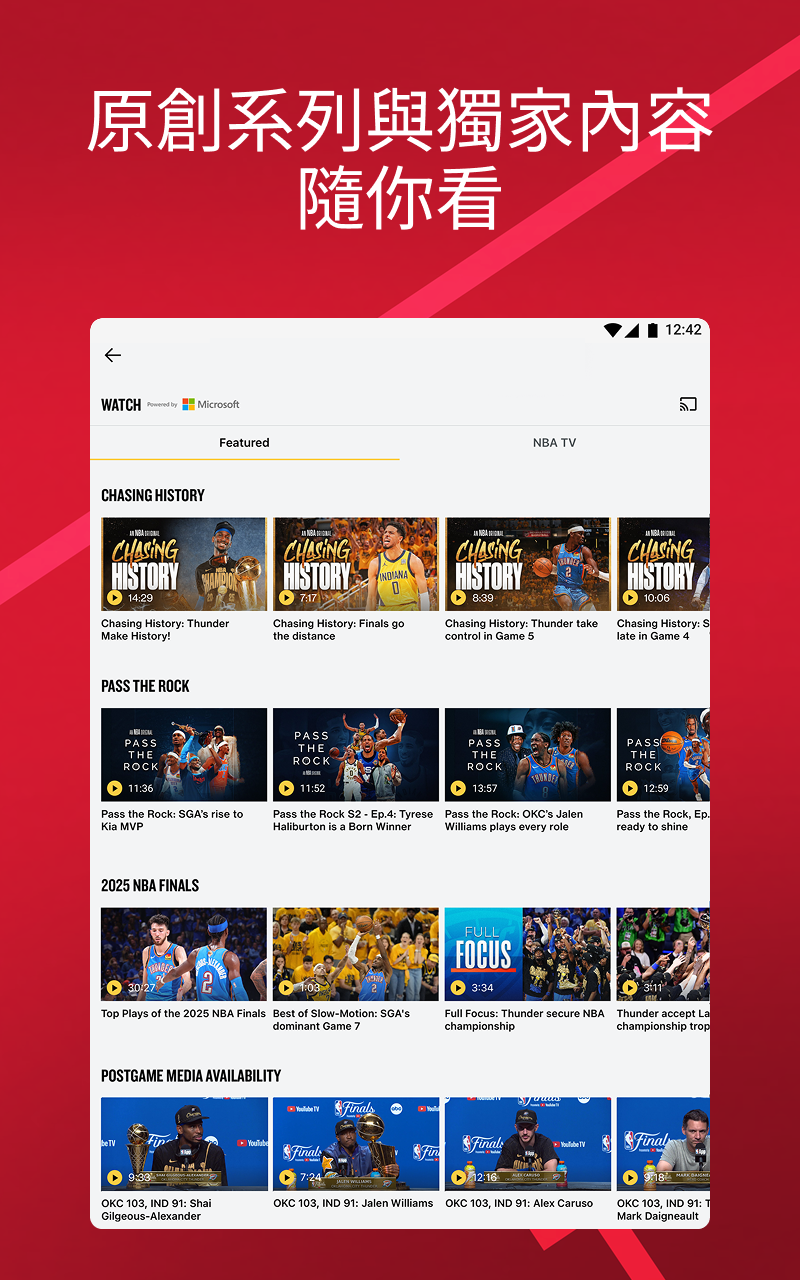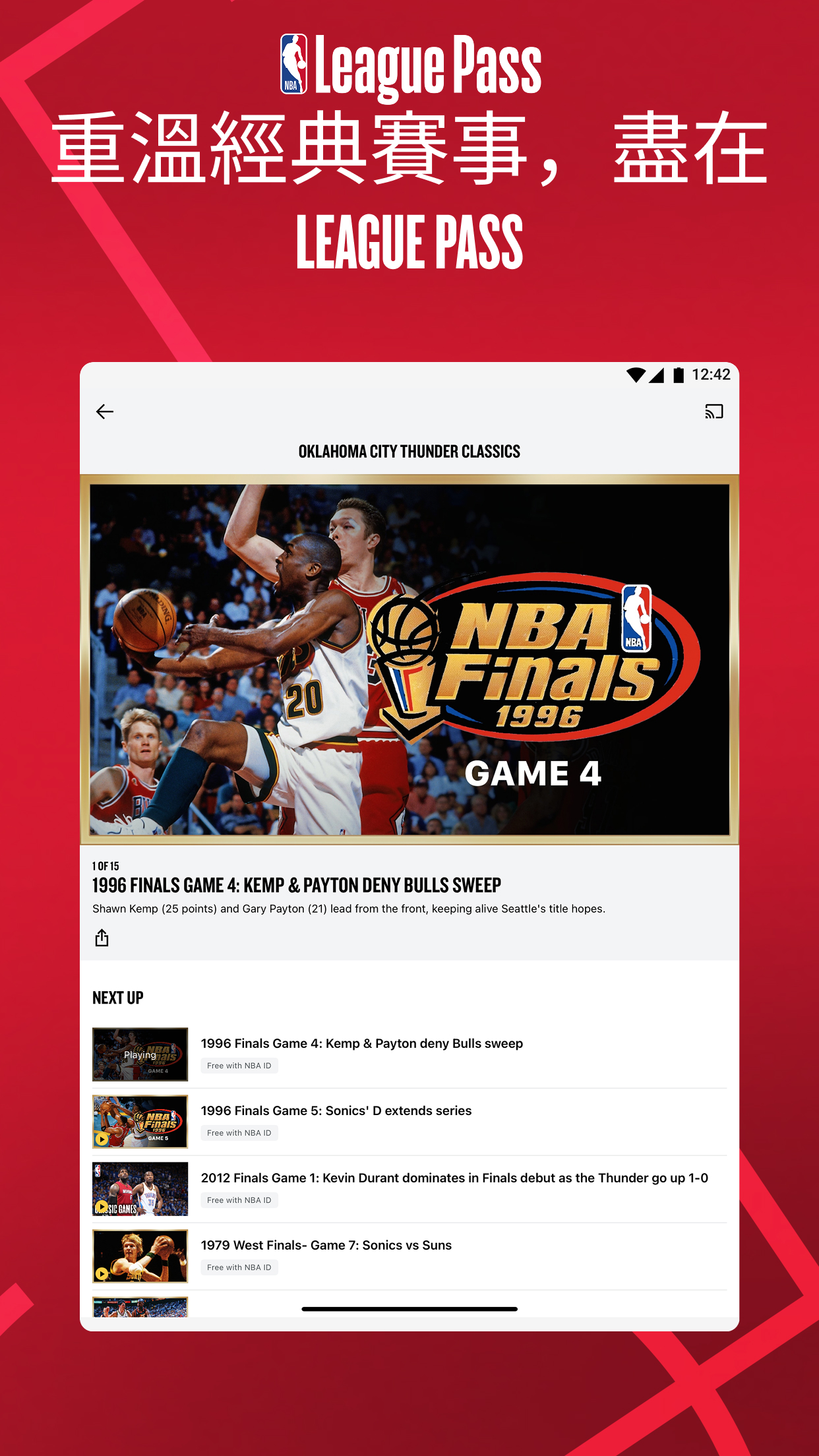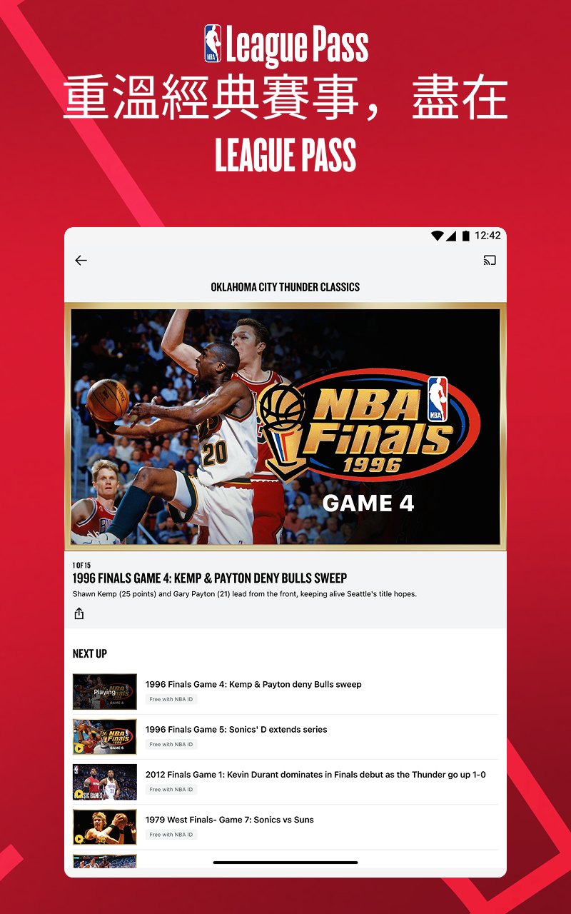 Live and on-demand games through Playoffs Package or League Pass (blackouts may apply)•Premium Game Experience: Live Stats, Scores and In Game Highlights of the Best Plays