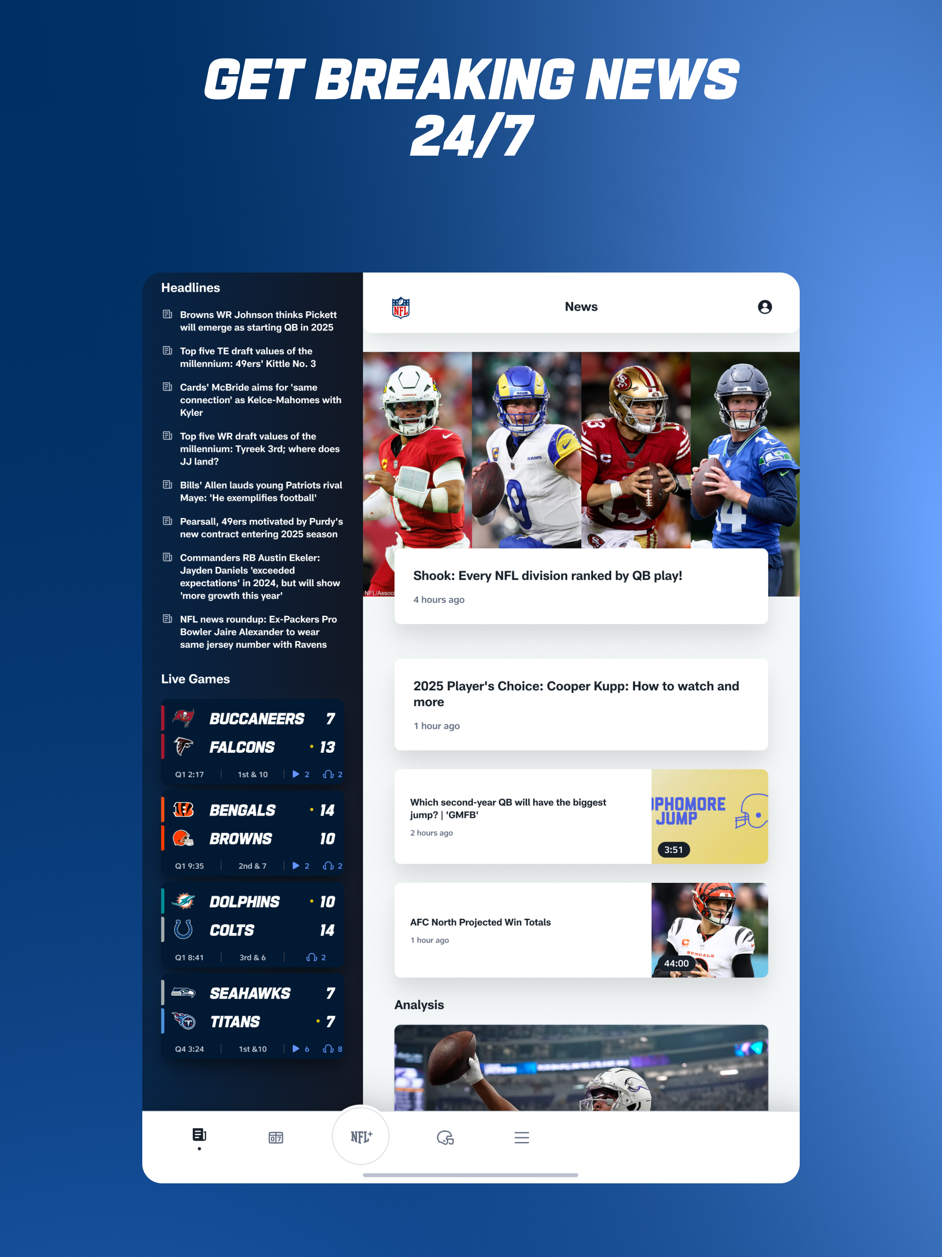 The redesign of the Official NFL app brings fans a different experience depending on the day and time.