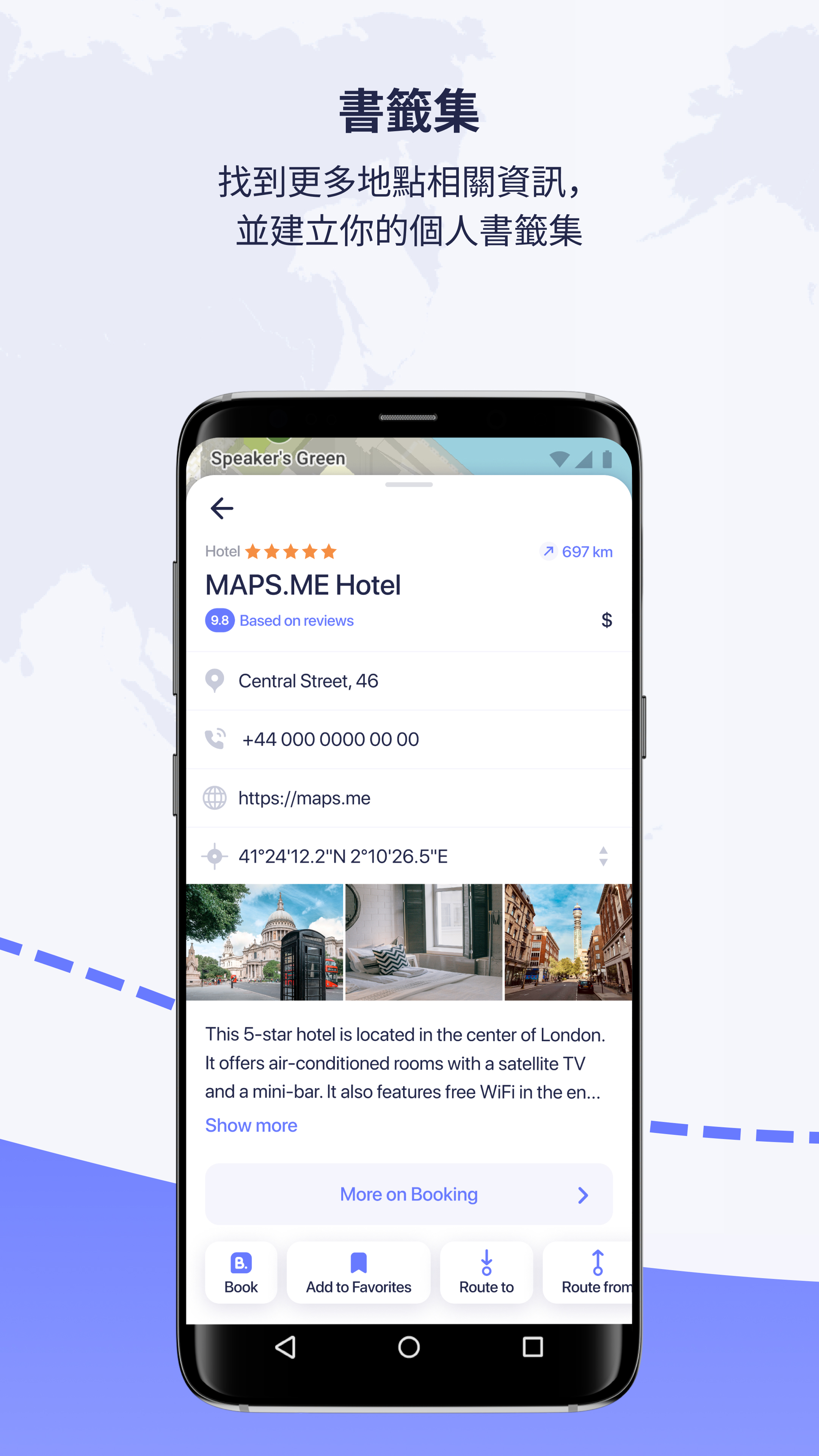 MAPS.ME offers the quickest offline maps of all the countries of the world. Travel with full confidence: wherever you are, MAPS.ME addresses all your offline mapping needs.
