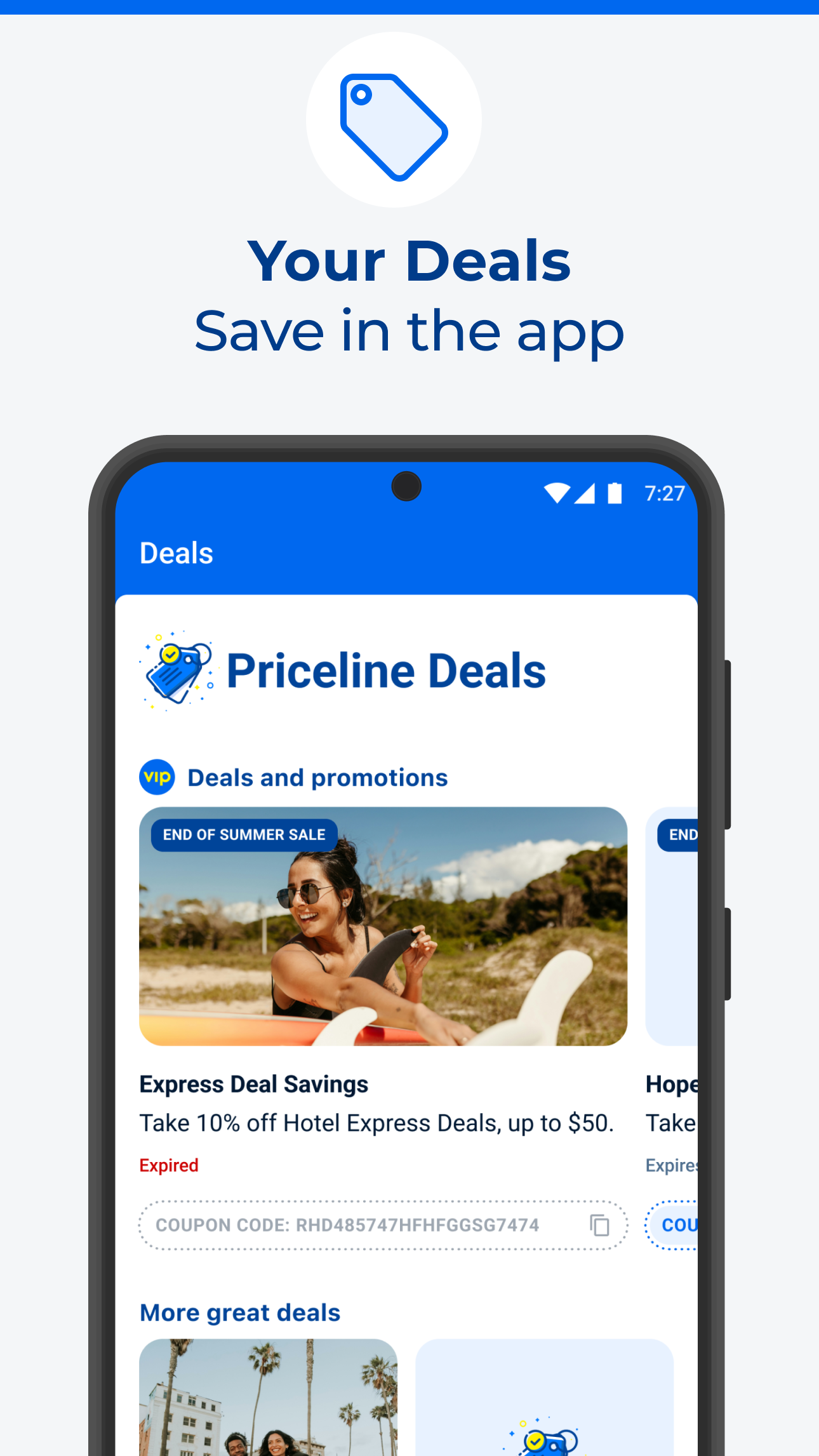 The Priceline app is a simple way to book hotels, flights and rental cars. All reservations are backed by our best price guarantee.