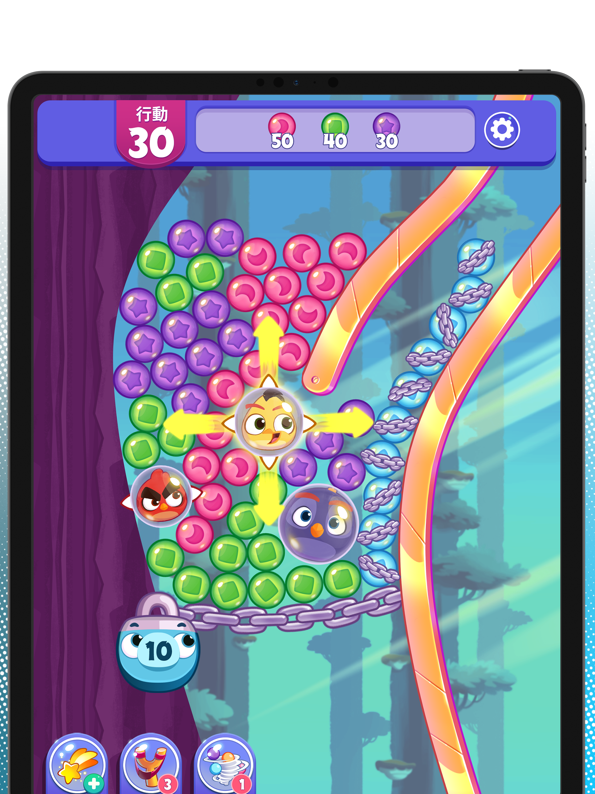 Even in this puzzle format though, they're still putting in some explosive elements to appease their fiery fowls. In their many, you're tasked to collect certain bubble shapes and sizes in a limited number of moves to earn to the ticket to the next round.