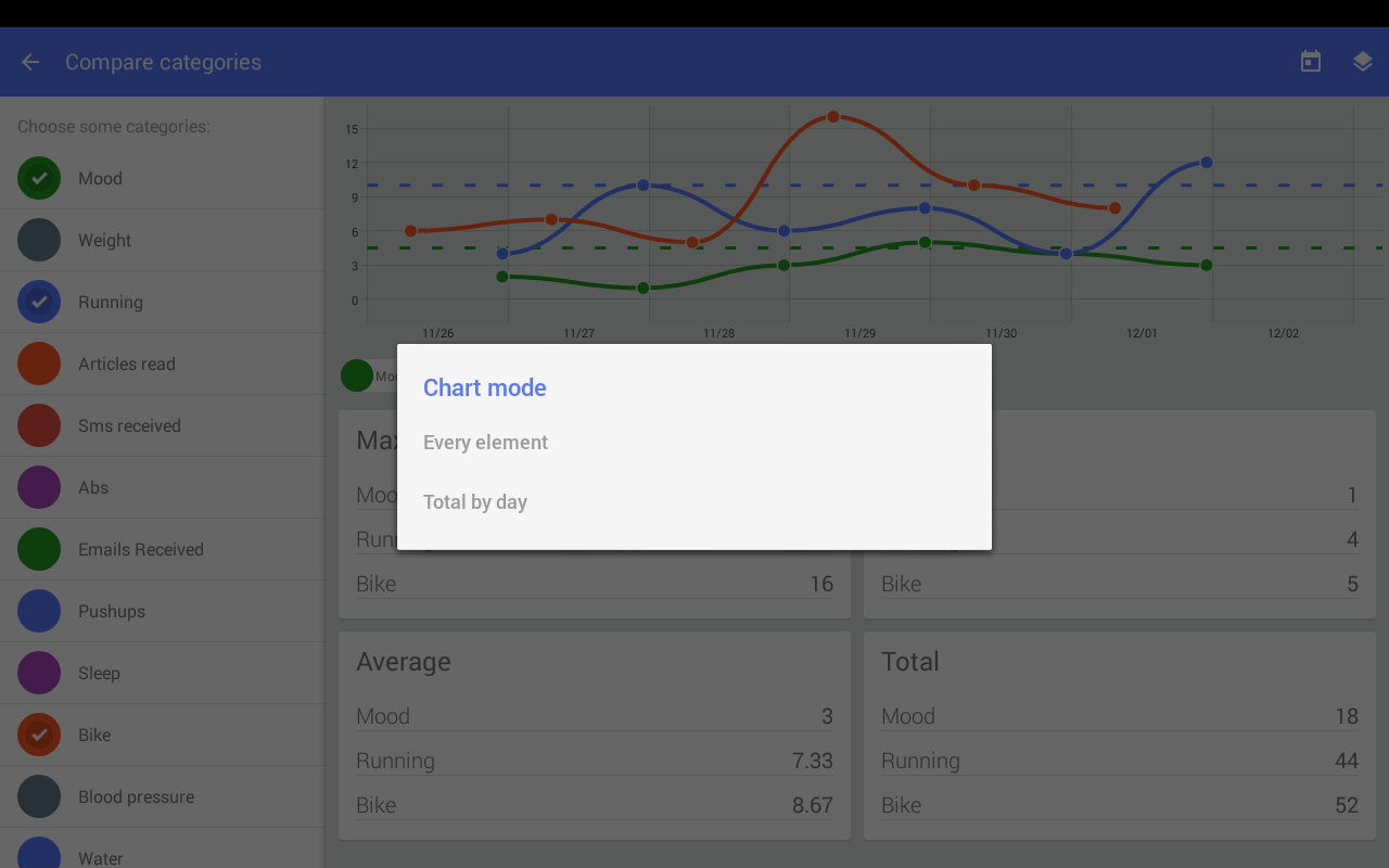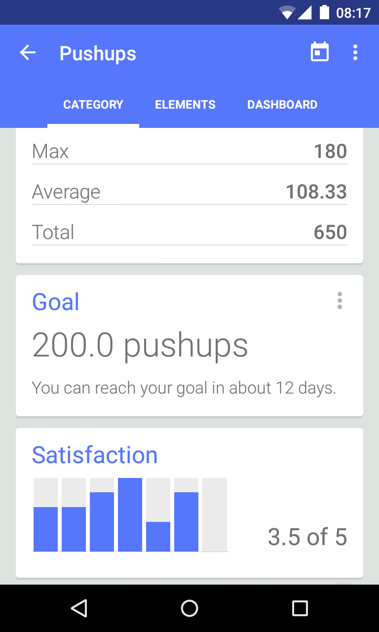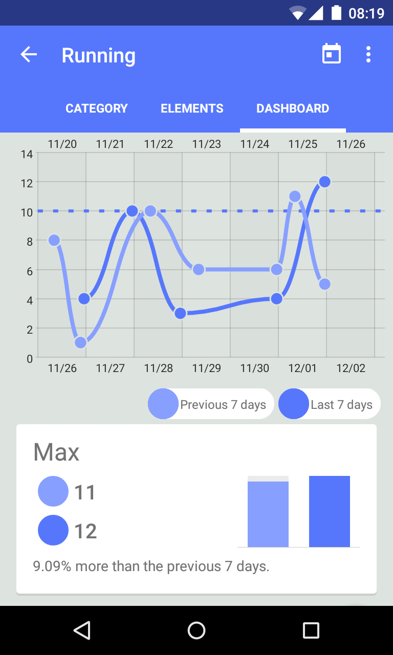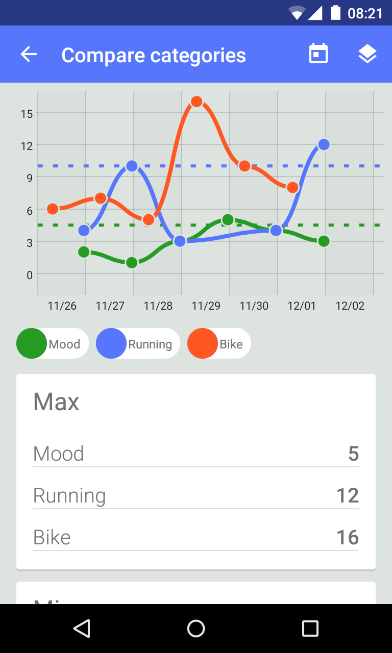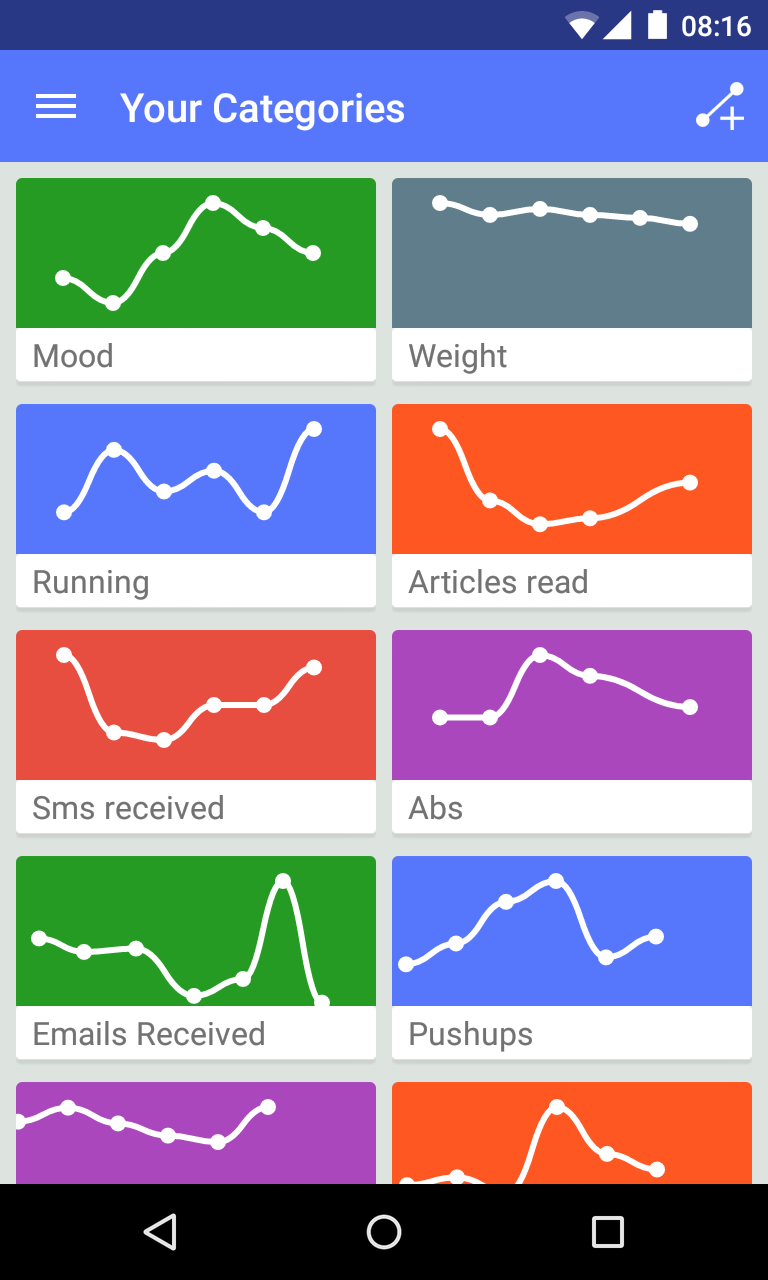 - Beautiful graphs are automatically generated for each category, so you can keep a visual track of your progress.