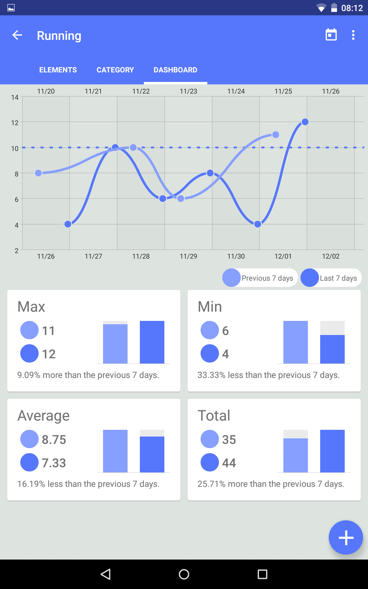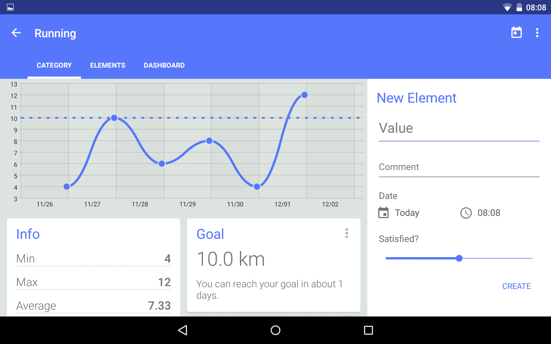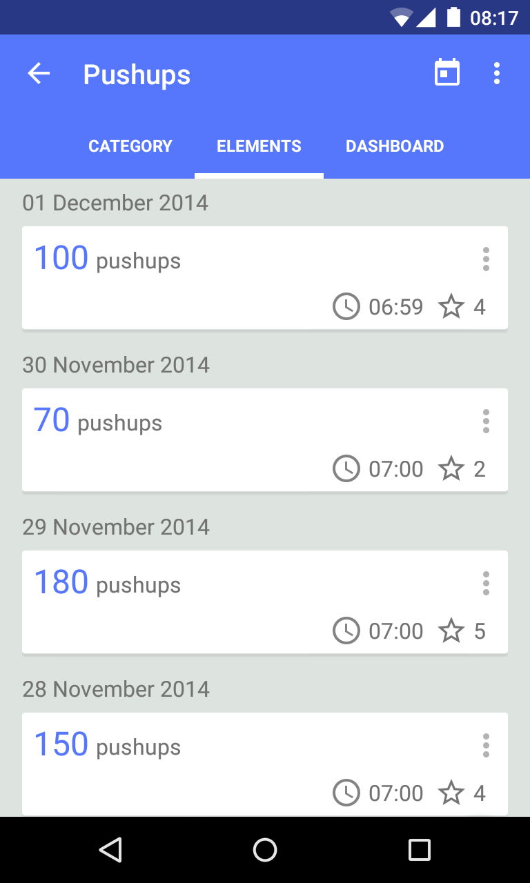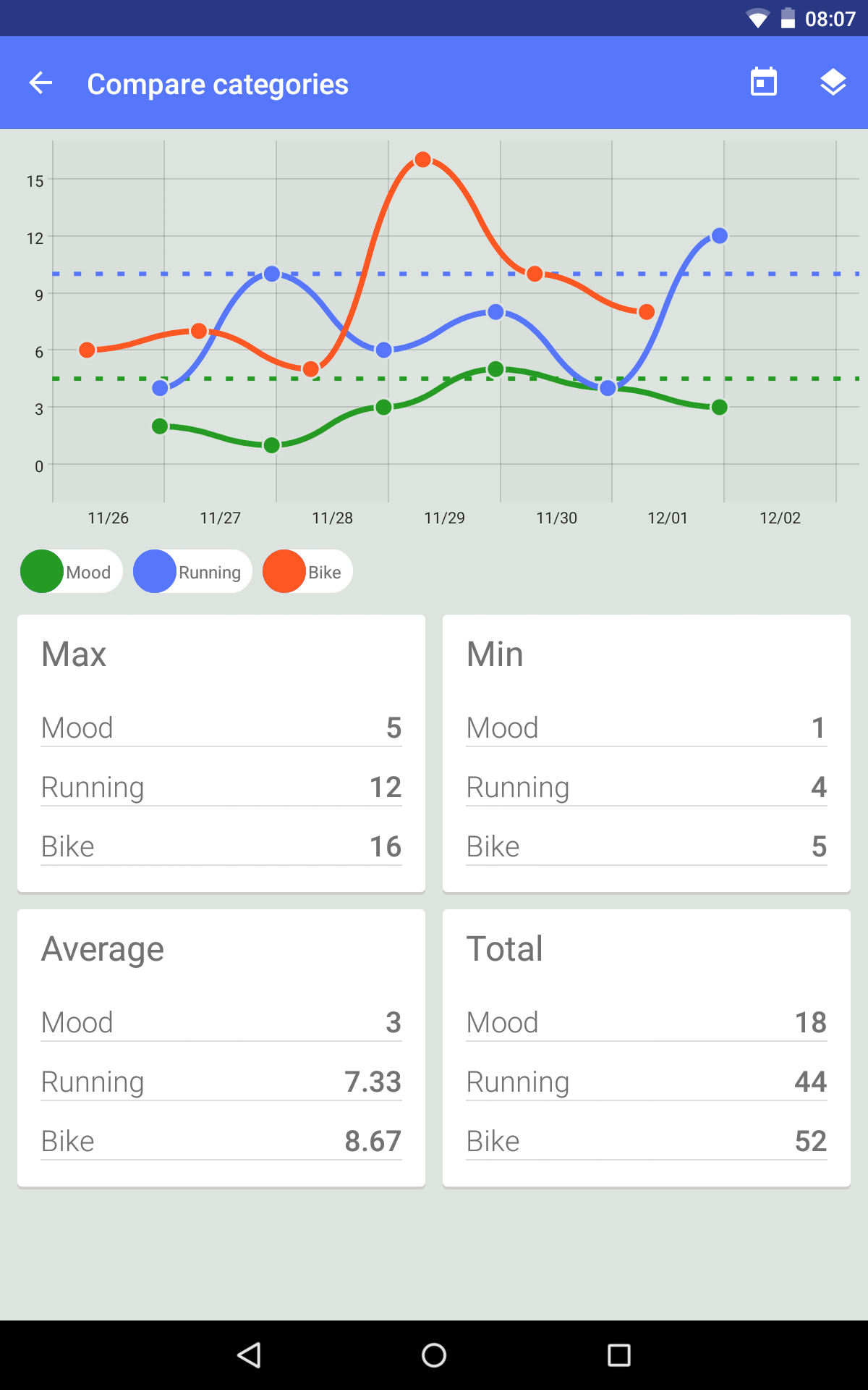 - Beautiful graphs are automatically generated for each category, so you can keep a visual track of your progress.
