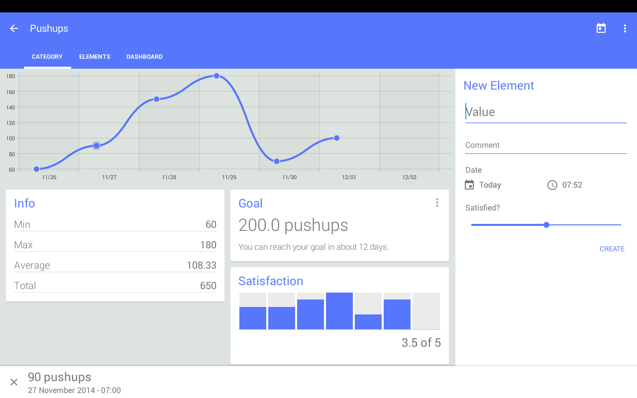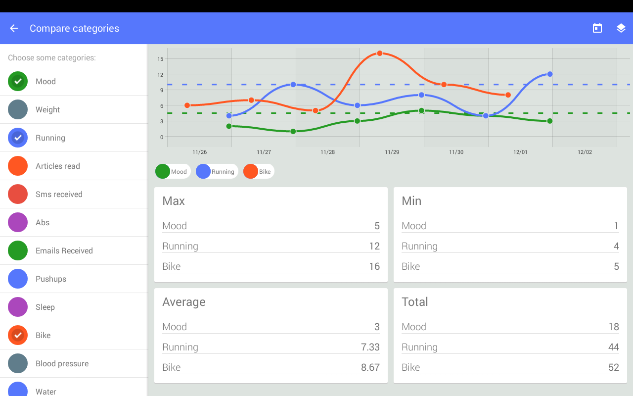 Track your weight, sleep hours, mugs of coffee, daily workouts and so on.