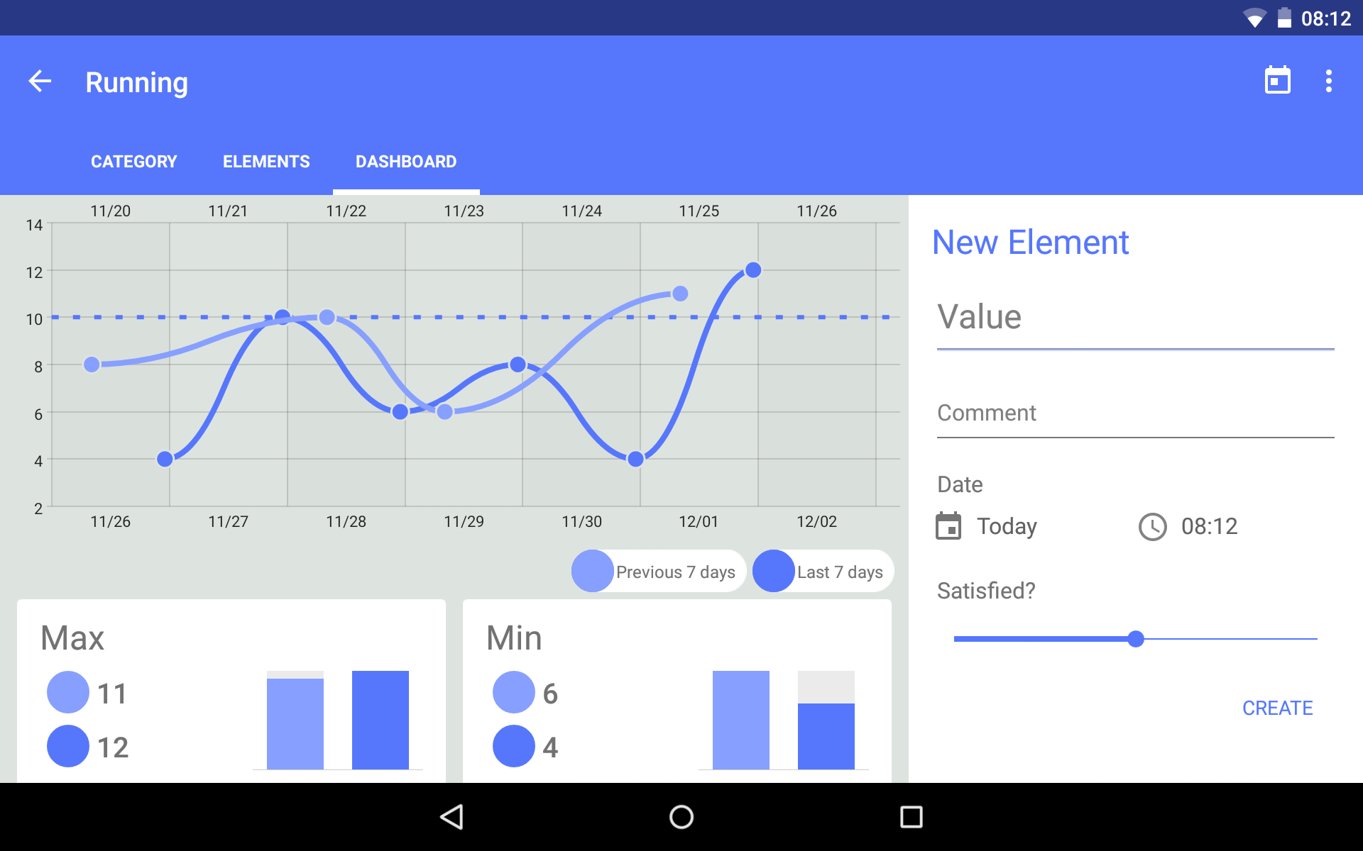 - Quick-add Widget: create a widget on your homescreen to add data faster than a flying kangaroo: just tap, set your value, and you're done!