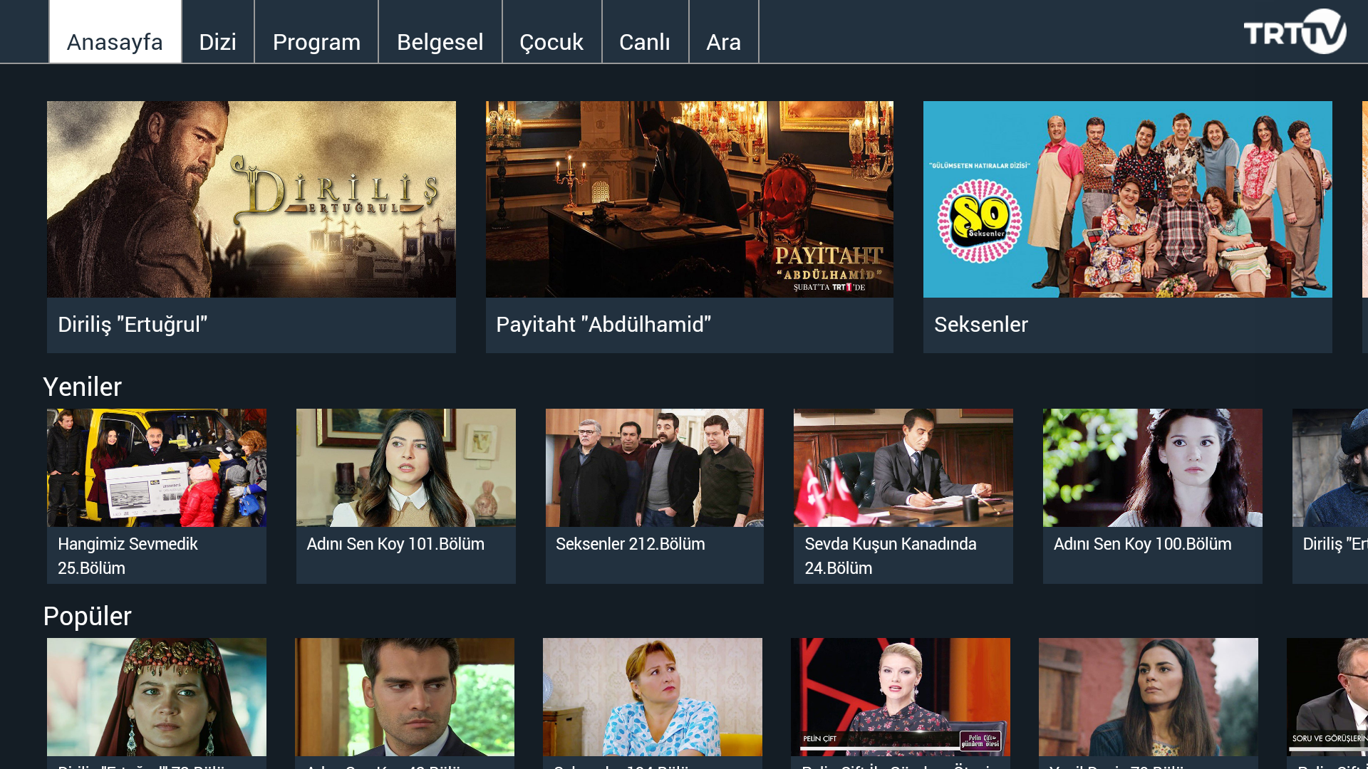 Akıllı televizyonlar için geliştirilen TRT Televizyon uygulaması sayesinde sevdiğiniz hiçbir programı, diziyi ve filmi kaçırmayacaksınız. Never miss another episode of popular shows of TRT. You can stream the current season of your favourite TRT show and watch live TV!