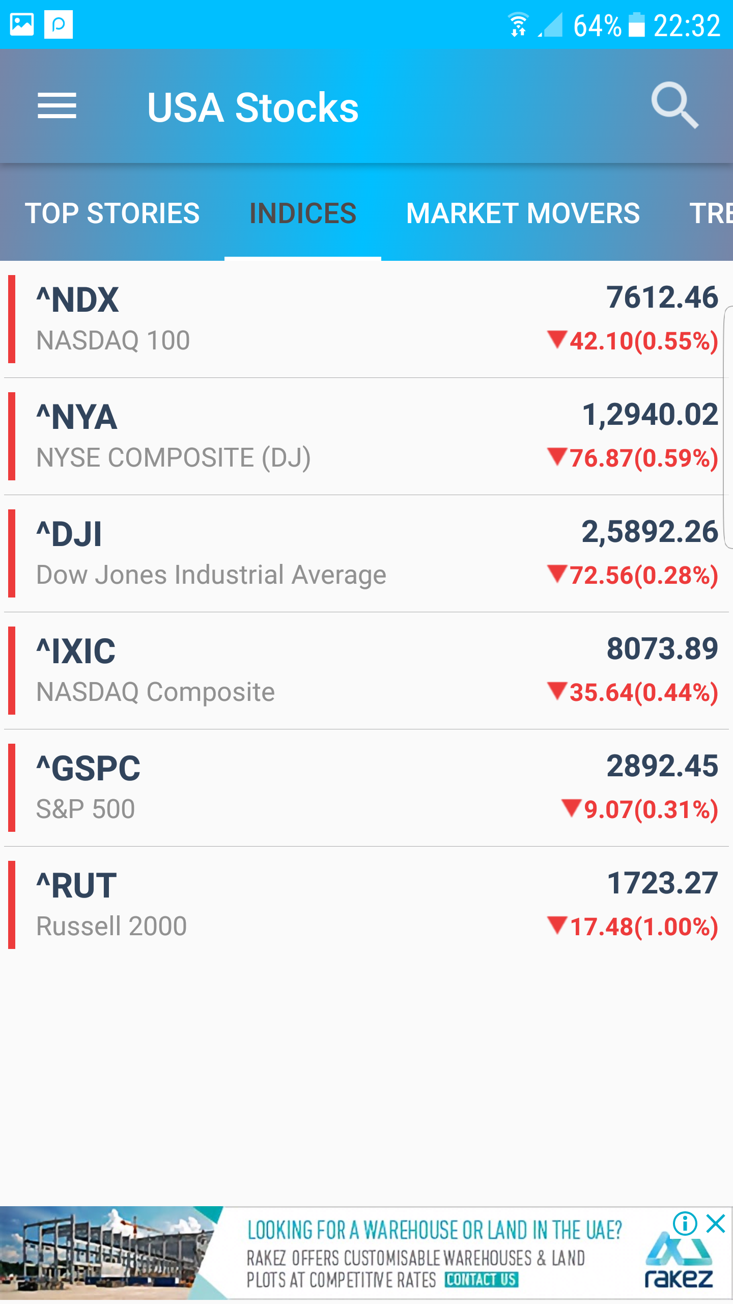強大的應用程序來跟踪所有美國股票市場的納斯達克,紐約證券交易所,Sectroal指數