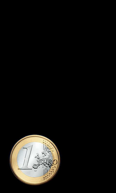 Le magicien montre une pièce de monnaie virtuelle, elle est invisible ! Il la lance en l'air et ... elle retombe à la vue de tous sur l'écran du téléphone !