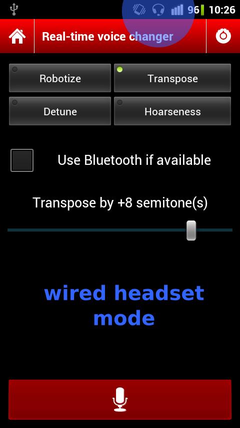 There are some of the classical Phase Vocoder effects available. Raise or lower your voice pitch up to 12 semitones, make it sound like a robot, make it detuned or hoarse. Feel free to experiment with this app. Just try to alter your own voice or of somebody else.