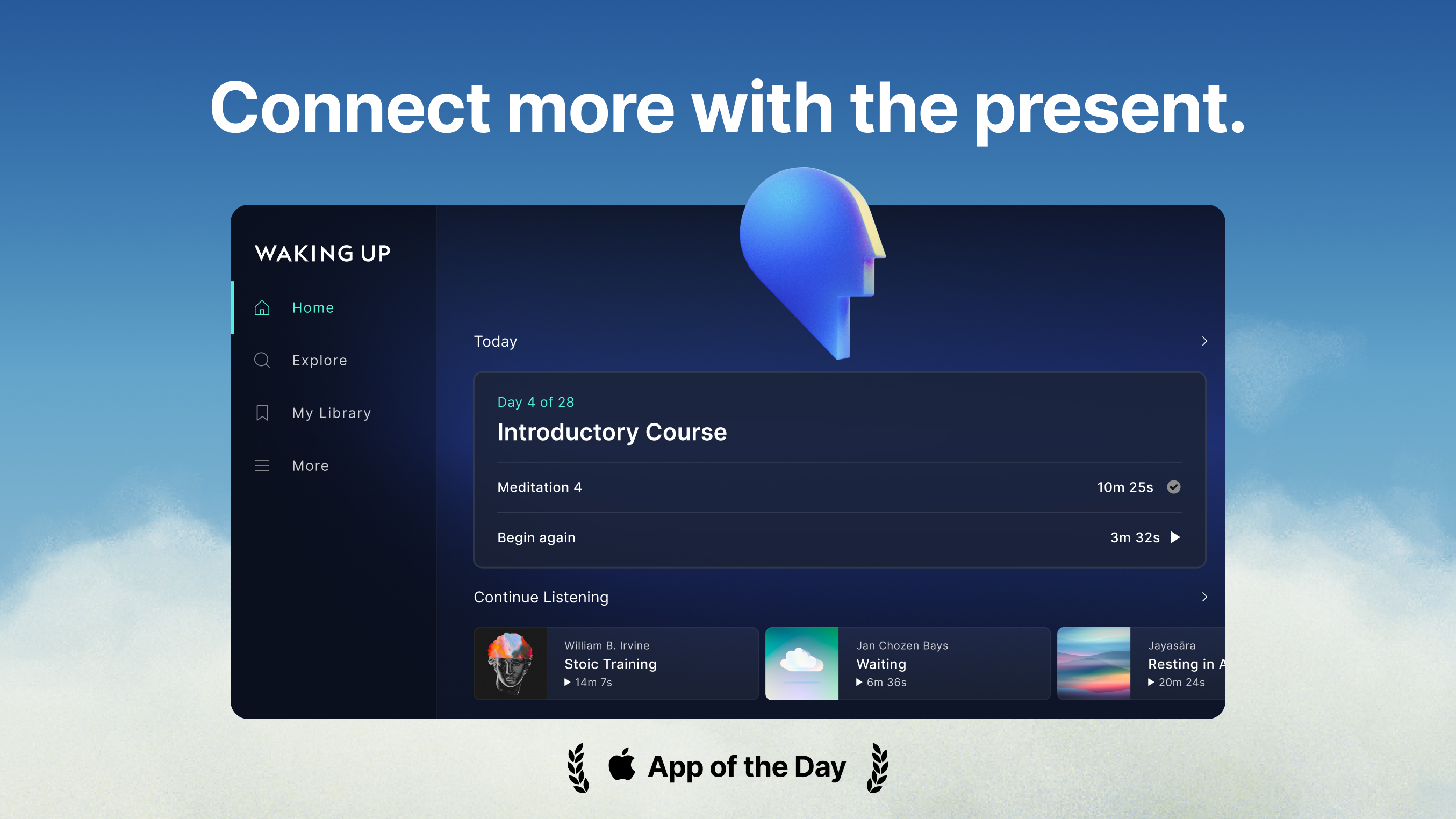 Recognized as a 2025 Pick by NYT WirecutterFeatured as a 2026 pick for the App Store “App of the Day”Thousands worldwide call Waking Up life-changing. Whether you want better sleep, more clarity, or deeper meditation, Waking Up is your complete guide.