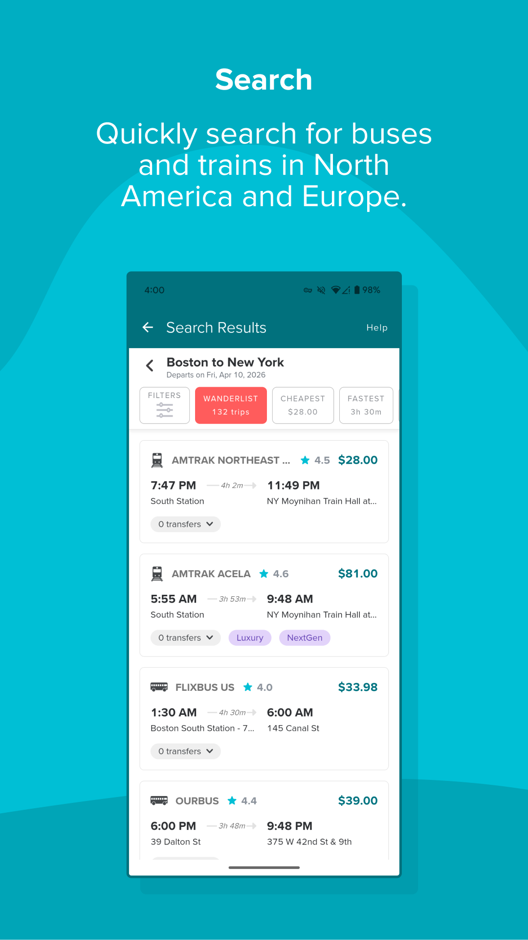 Wanderu: Bus & Train Tickets