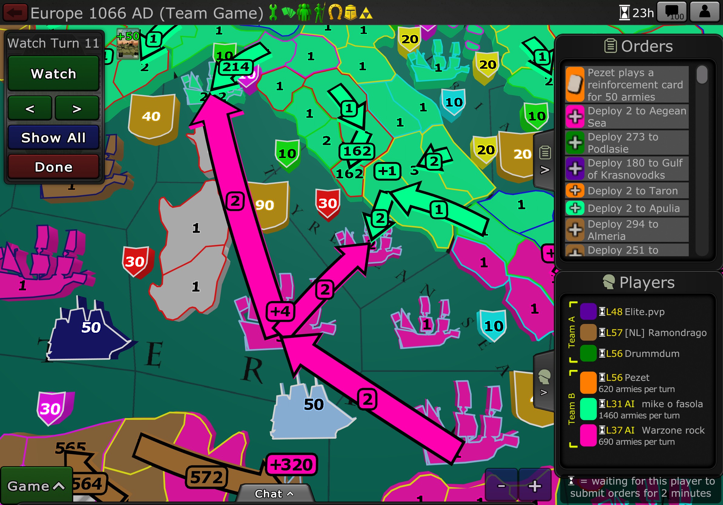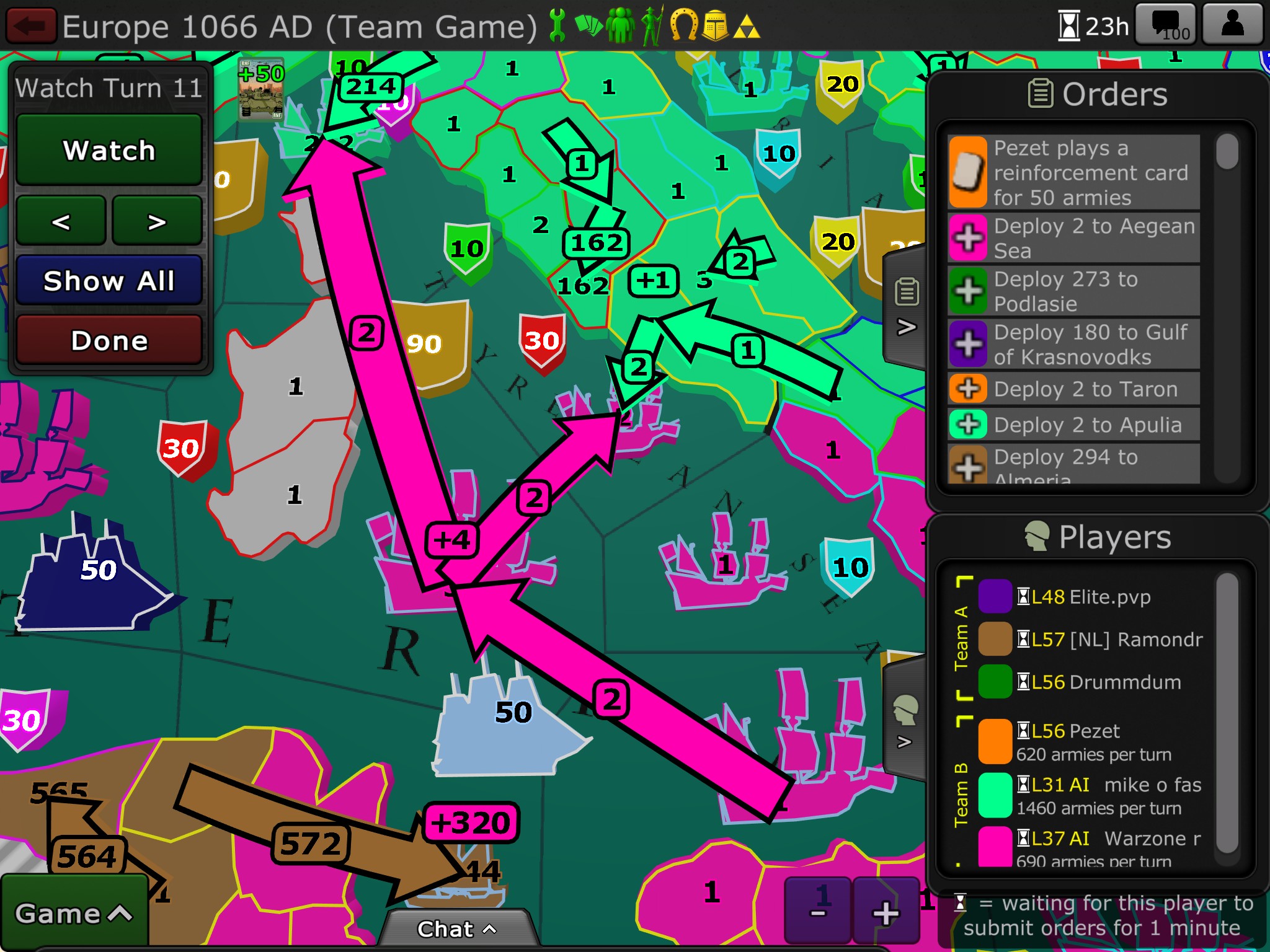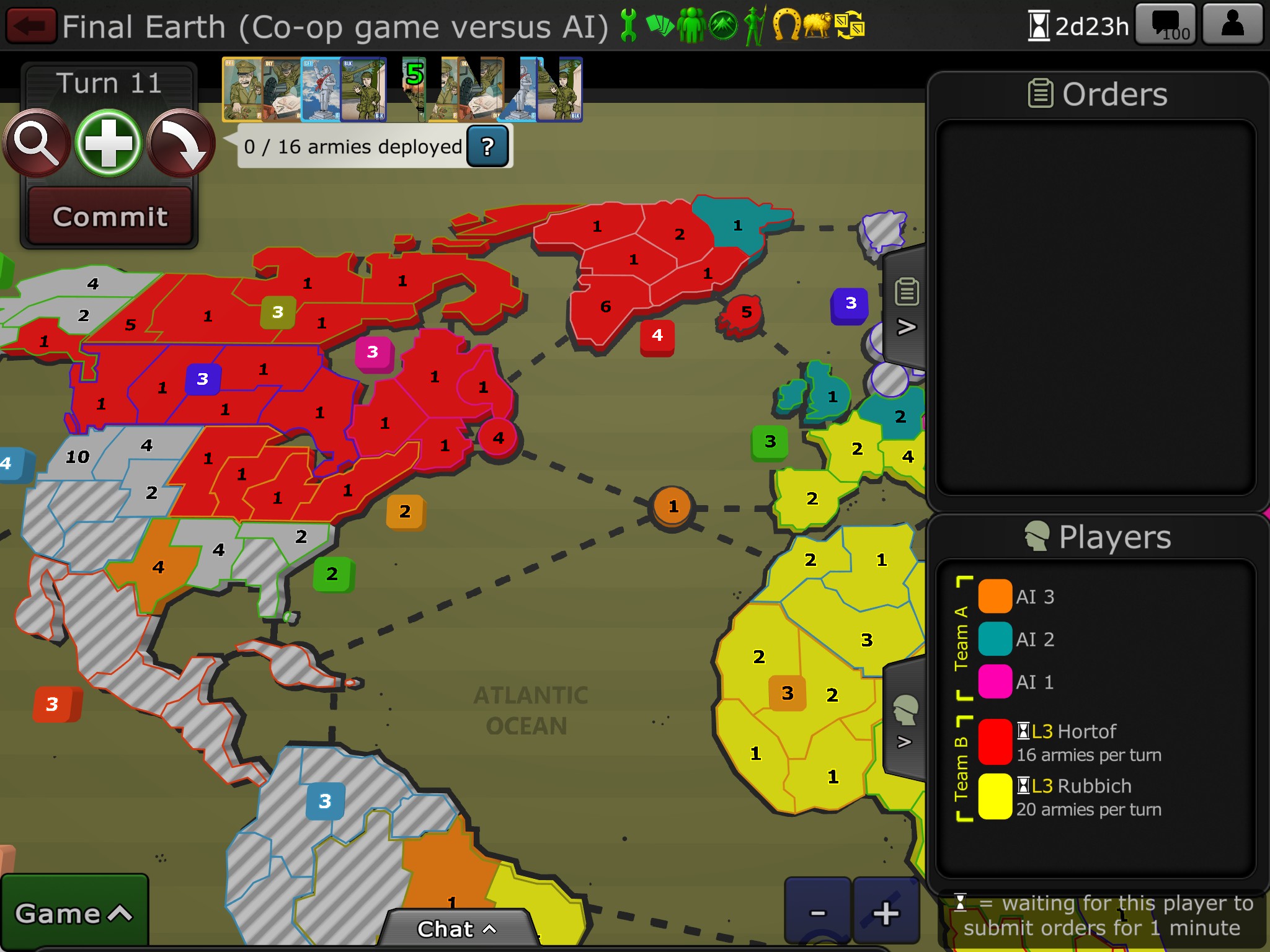 - Added guides - Added the "Find me" button at the start of big games that helps you find your territories. - Removed phantom attacks - When creating a game, the cards are now sorted in a more logical sequence - The tournament players tab now shows how many wins, losses, and in-progress games each player has. - Strengthened the tournament bracket player highlight color. - See blog for full patch notes.