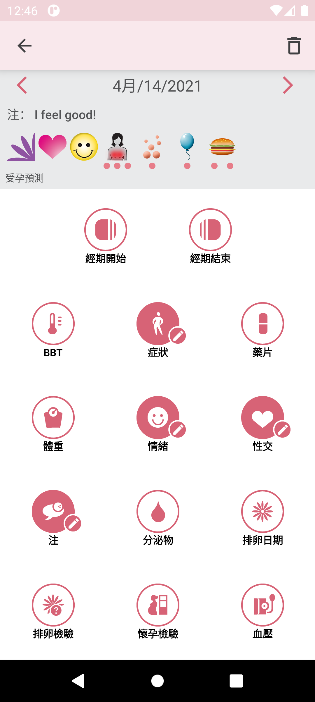 * 預置 100 多種症狀,還可選擇體重、基礎體溫、心情、藥物使用情況、性生活、宮頸黏、圖表等更多功能。