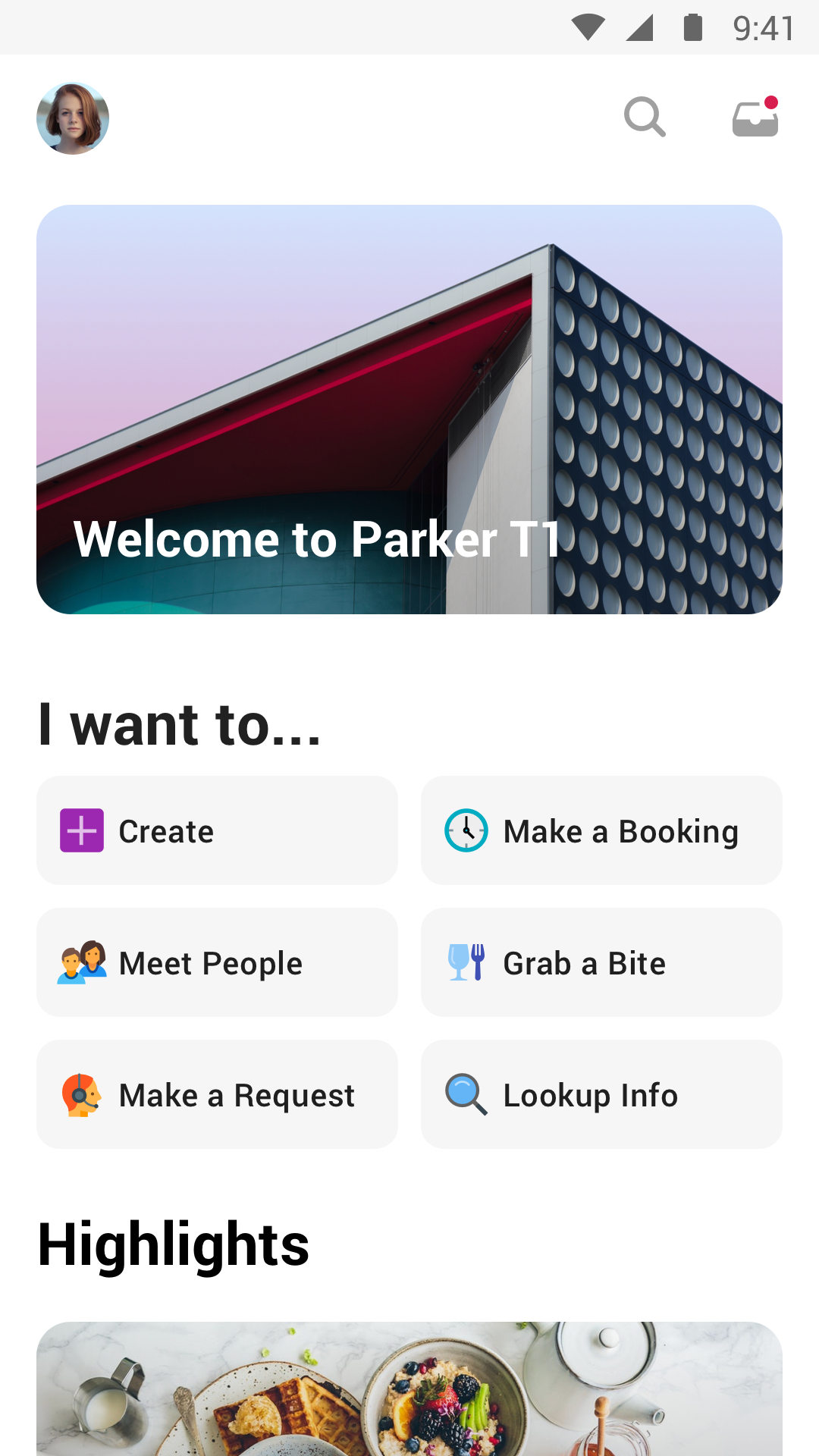 - Services: access all the services that your organization offers. Yoga classes, canteen menu, room bookings, emergency procedures, servicing requests. All from one single interface. No extra apps to download, no new accounts to set up.