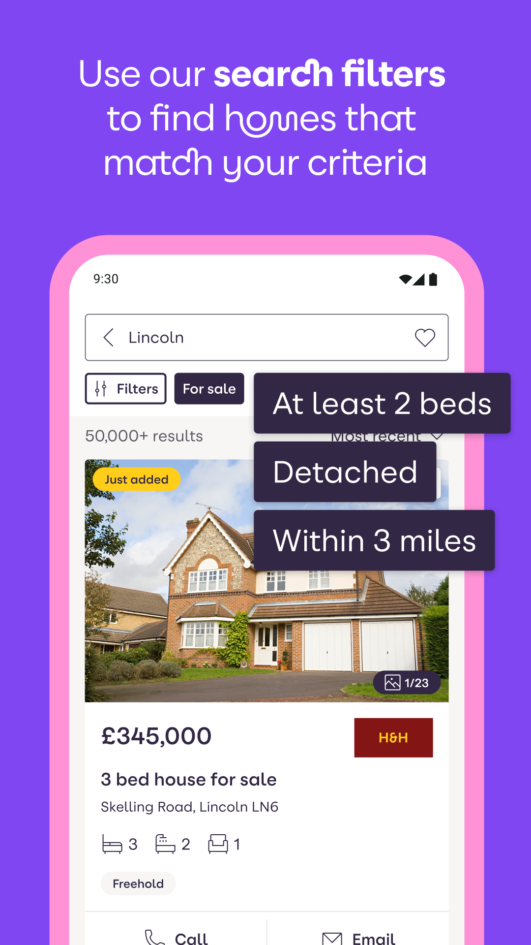使用智慧篩選器尋找符合您條件的房屋—從新建房屋和待修繕房屋到有花園、停車位、電動車充電樁的房屋、共有產權房屋、鄉村別墅、古典房屋等等。